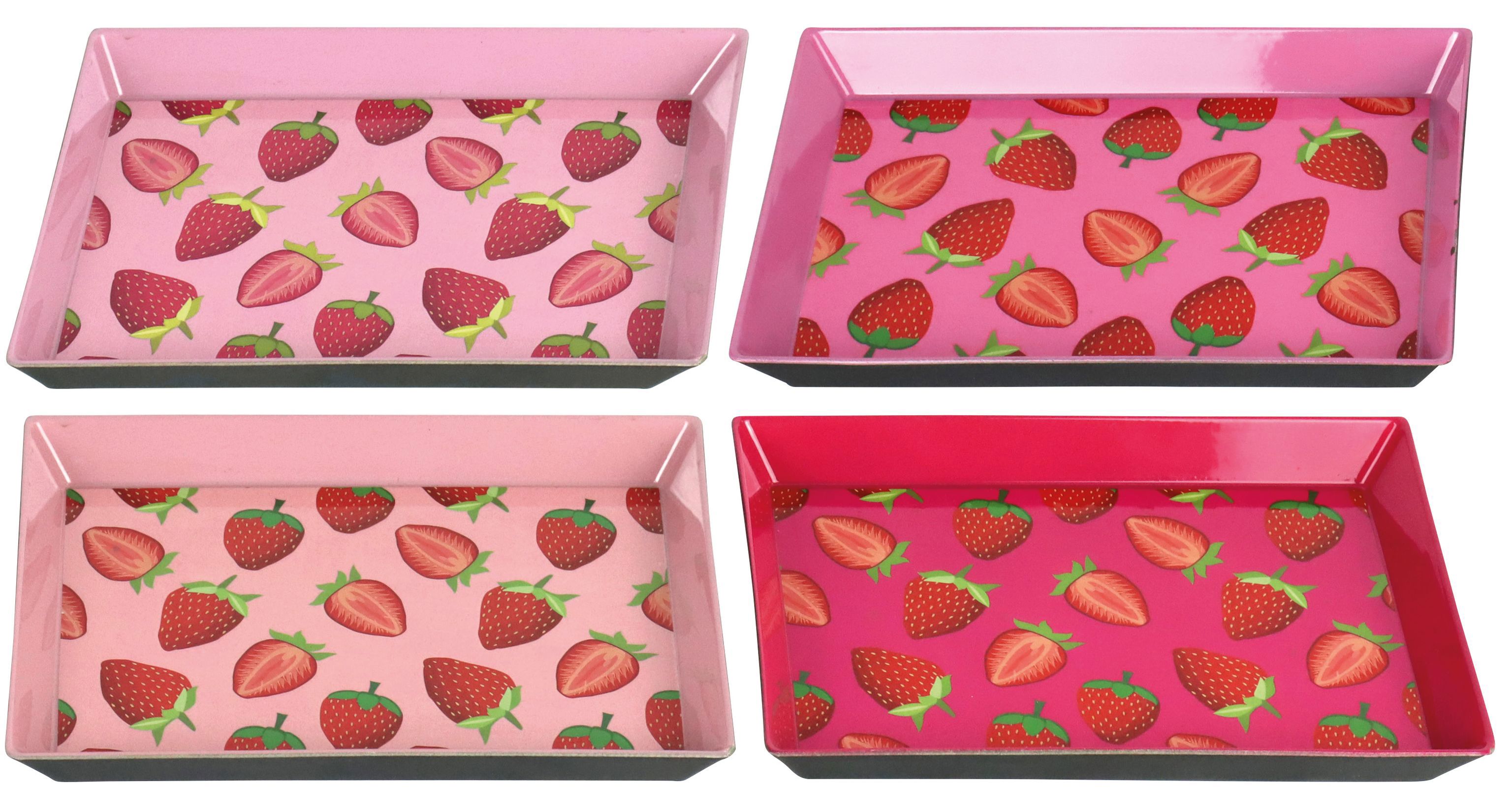 Die farbenfrohen Erdbeermotive verleihen den Tabletts eine frische und lebendige Ausstrahlung. Sie bringen nicht nur einen Hauch Sommer in jeden Raum, sondern sind auch ein Verkauffokus für Händler, die ihren Kunden etwas Besonderes bieten möchten. Präsentieren Sie dieses fröhliche Set in Ihrem Ladengeschäft als dekorativen Blickfang oder integrieren Sie es in themenbezogene Displays, um das Interesse Ihrer Kunden zu wecken.