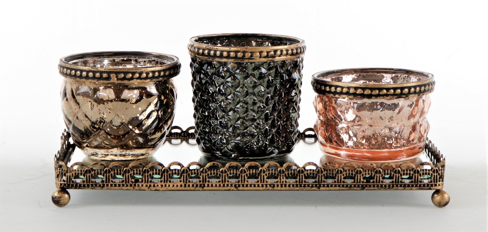 • Abmessung: Tablett: 21x10,5x2,5cm; Windlichter: ø6,5x6,5cm;