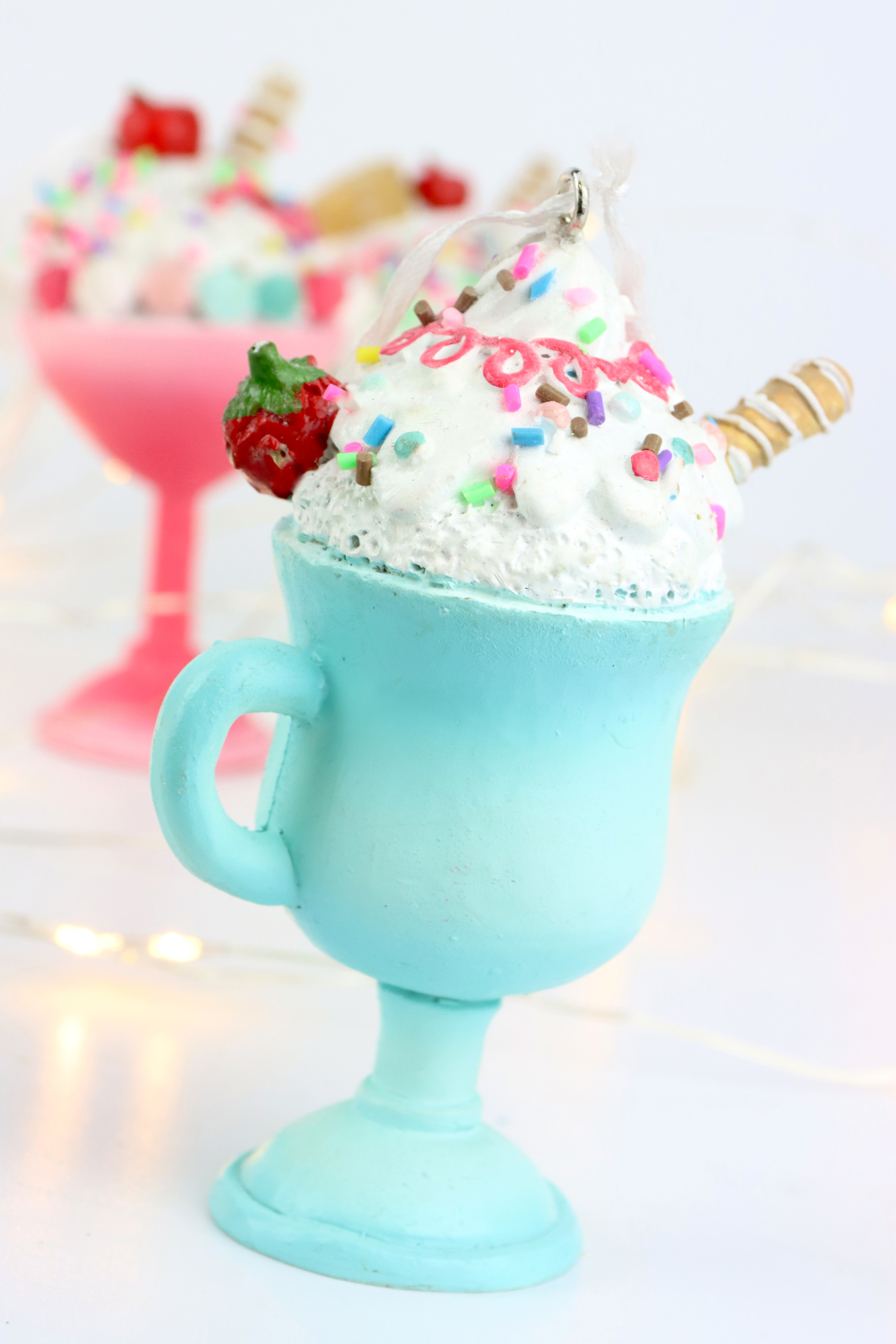 Keywords: Eisbecher-Anhänger, Weihnachtsdekoration, Polyresin, Wohnen, Lifestyle, Vintage, Retrostyle, Einzelhandel, Weihnachtssaison, Online-Shop.