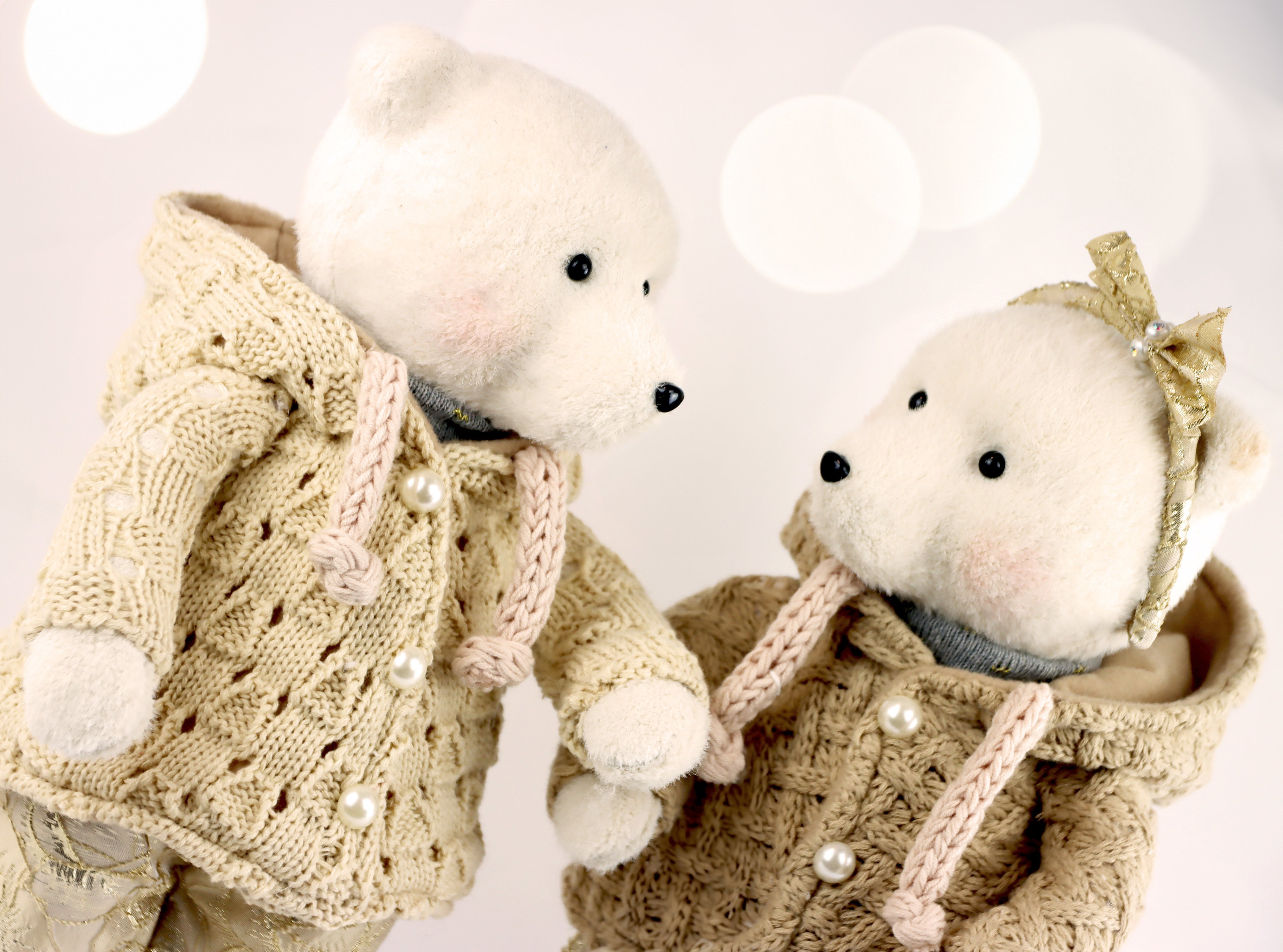 - Set bestehend aus zwei Bären in braunen Strickpullovern