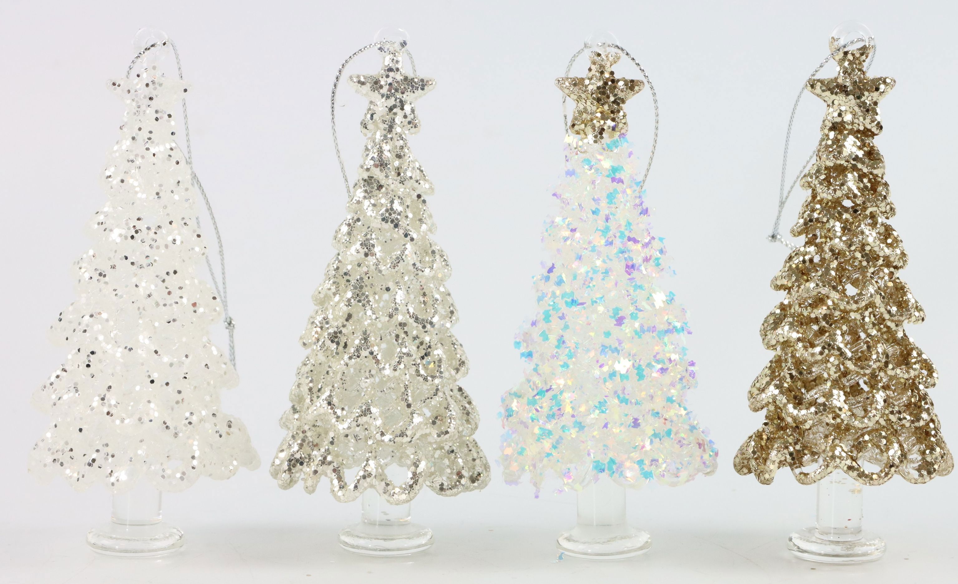 DEHolen Sie sich das Prunkstück Ihrer Weihnachtsdekoration nach Hause - unseren einzigartigen Glasschmuck "Kristallbaum". Mit der Artikelnummer 8167 wird dieses charmant gestaltete, vier teilige Set aus Glas zu einem unwiderstehlichen Blickfang in Ihrer Adventszeit. Die "Kristallbäume" sind handgefertigt und besitzen eine Größe von etwa 12 cm. Sie sind nicht nur ein stilvolles Accessoire für jedes Zuhause oder Verkaufsraum, sondern auch ein ideales Weihnachtsgeschenk für Kunden, Mitarbeiter oder liebe Freunde.