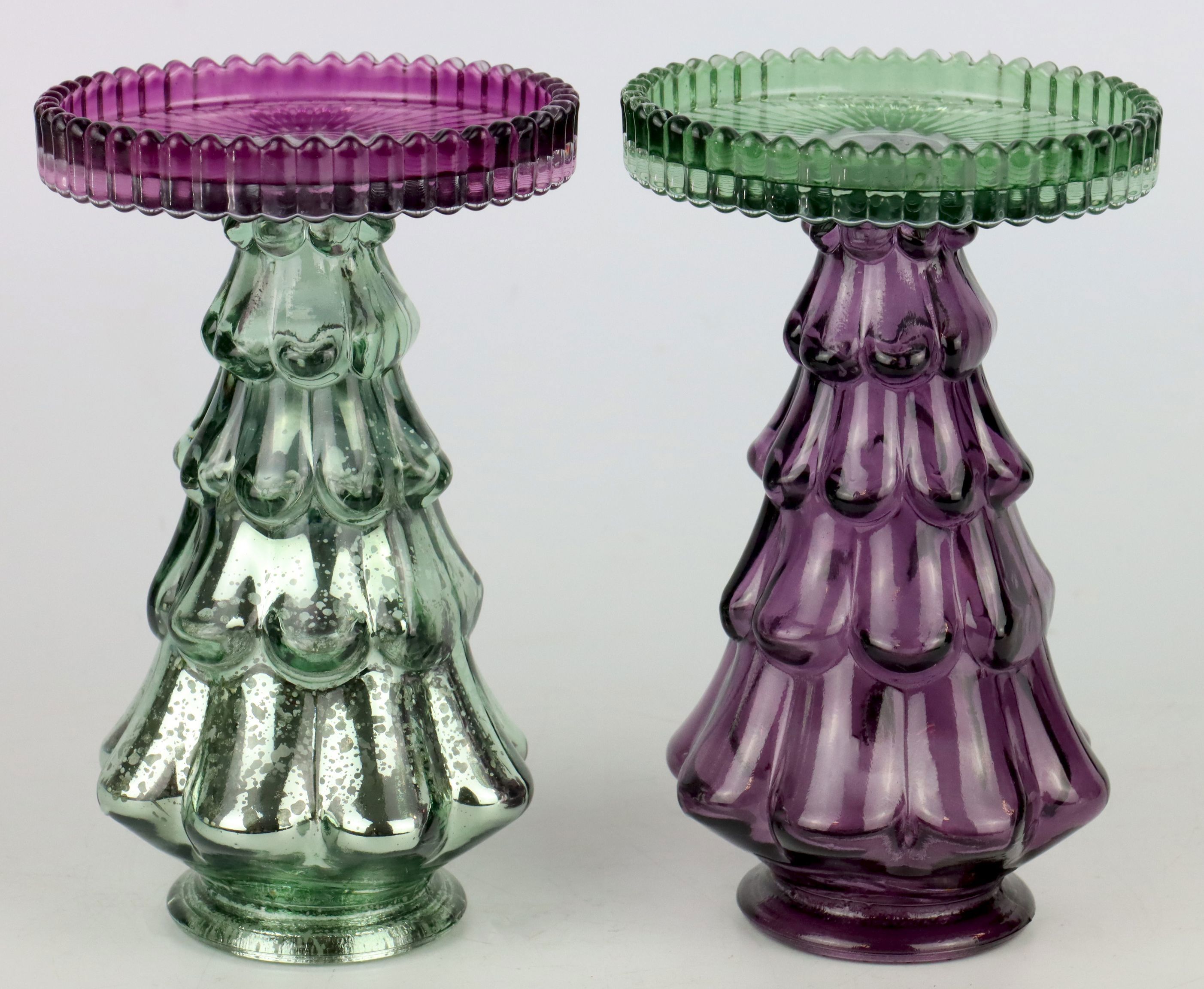 Unser zweiteiliges Leuchterset, gestaltet in den klassischen Weihnachts-Motiven lila und grün, fängt die Essenz der festlichen Jahreszeit ein und harmoniert wunderbar mit einer Vielzahl von Weihnachtsdekorationen. Die stilisierten Tannenbaum-Designs sind nicht nur ein optischer Hingucker, sondern vermitteln auch ein traditionelles, gemütliches Flair, das Kunden bei der Dekoration ihrer Wohnräume suchen. Dank der hochwertigen Verarbeitung sind die Leuchter dauerhaft und robust, ideal für den Einsatz über viele Weihnachtszeiten hinweg.