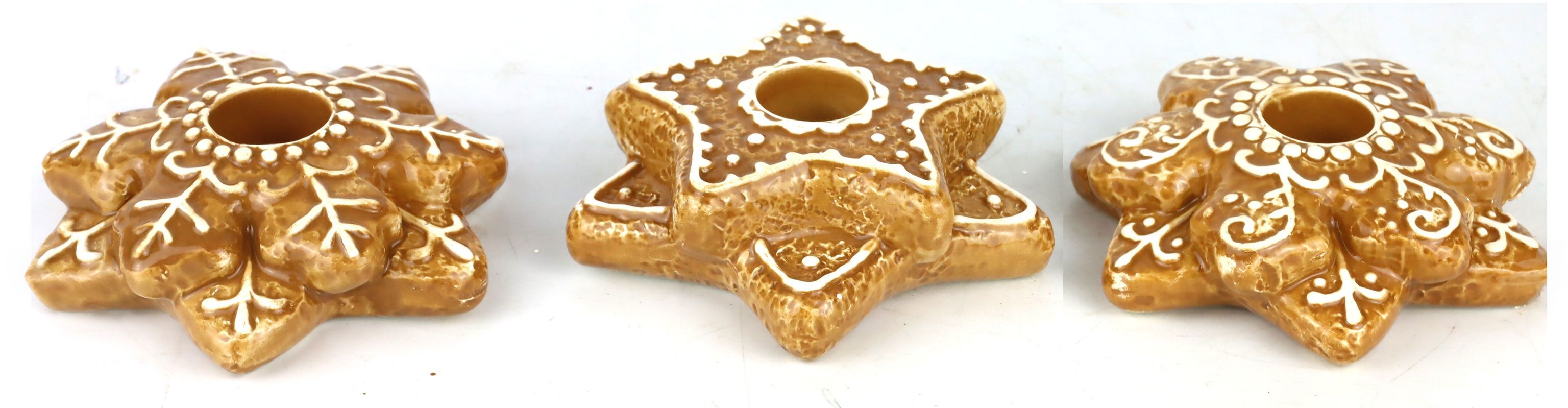 Entfachen Sie magische Weihnachtsstimmung in Ihrem Fachgeschäft mit unserem exklusiven Kerzenleuchter-Set "Ginger Joy". Dieses dreiteilige Set setzt ein festliches Highlight in jedem Raum und ist ideal für das Sortiment an Weihnachtsdekorationen im Bereich Wohnen und Lifestyle. Der "Ginger Joy" Kerzenleuchter überzeugt nicht nur durch sein charmantes Sternmotiv, sondern auch durch seine einzigartige Lebkuchenoptik, die sofort an den Duft von frisch gebackenem Lebkuchen erinnert.