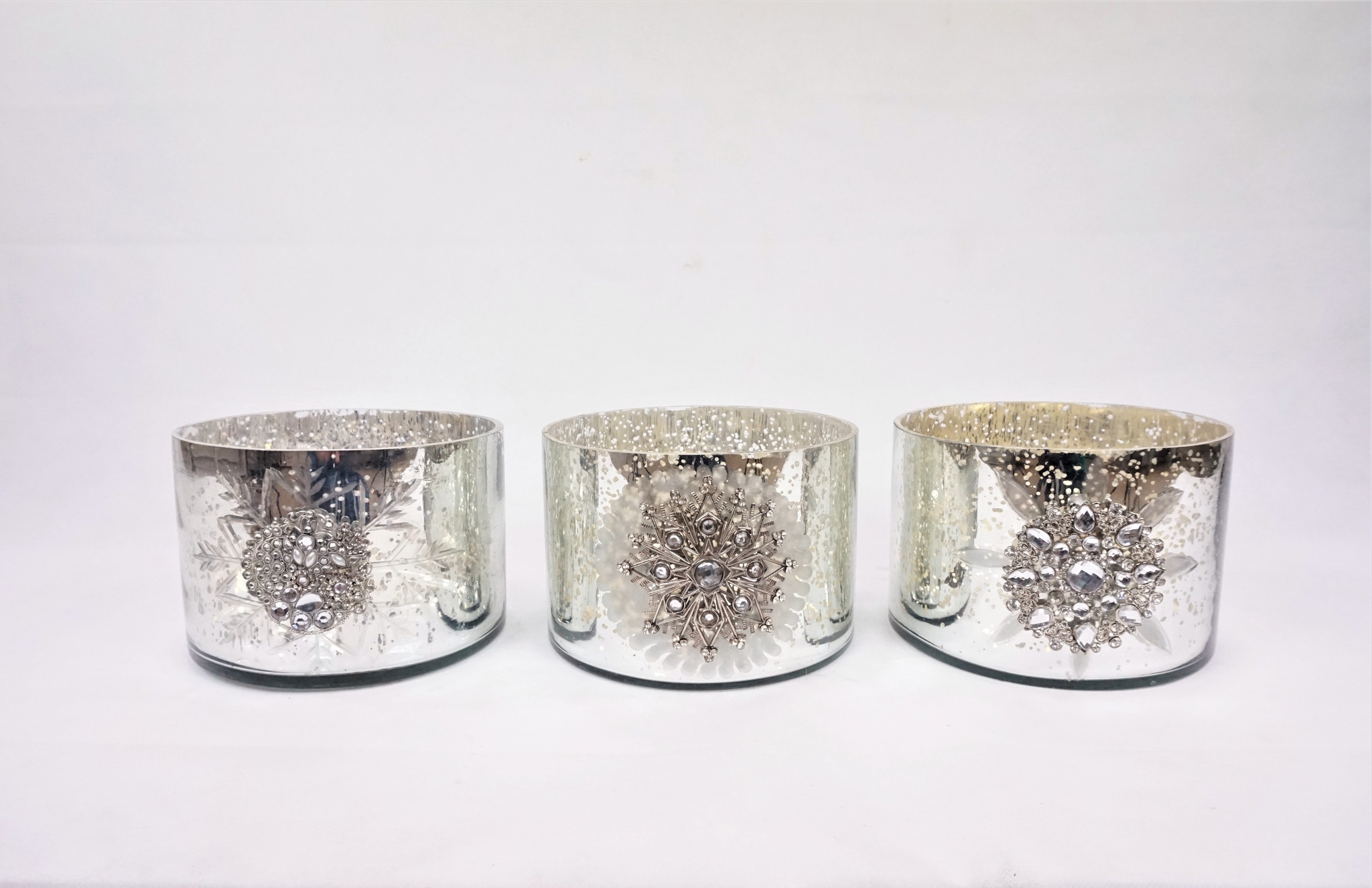 1. Ein Set aus drei Windlichtern in hochwertiger Eis Kristall Optik.