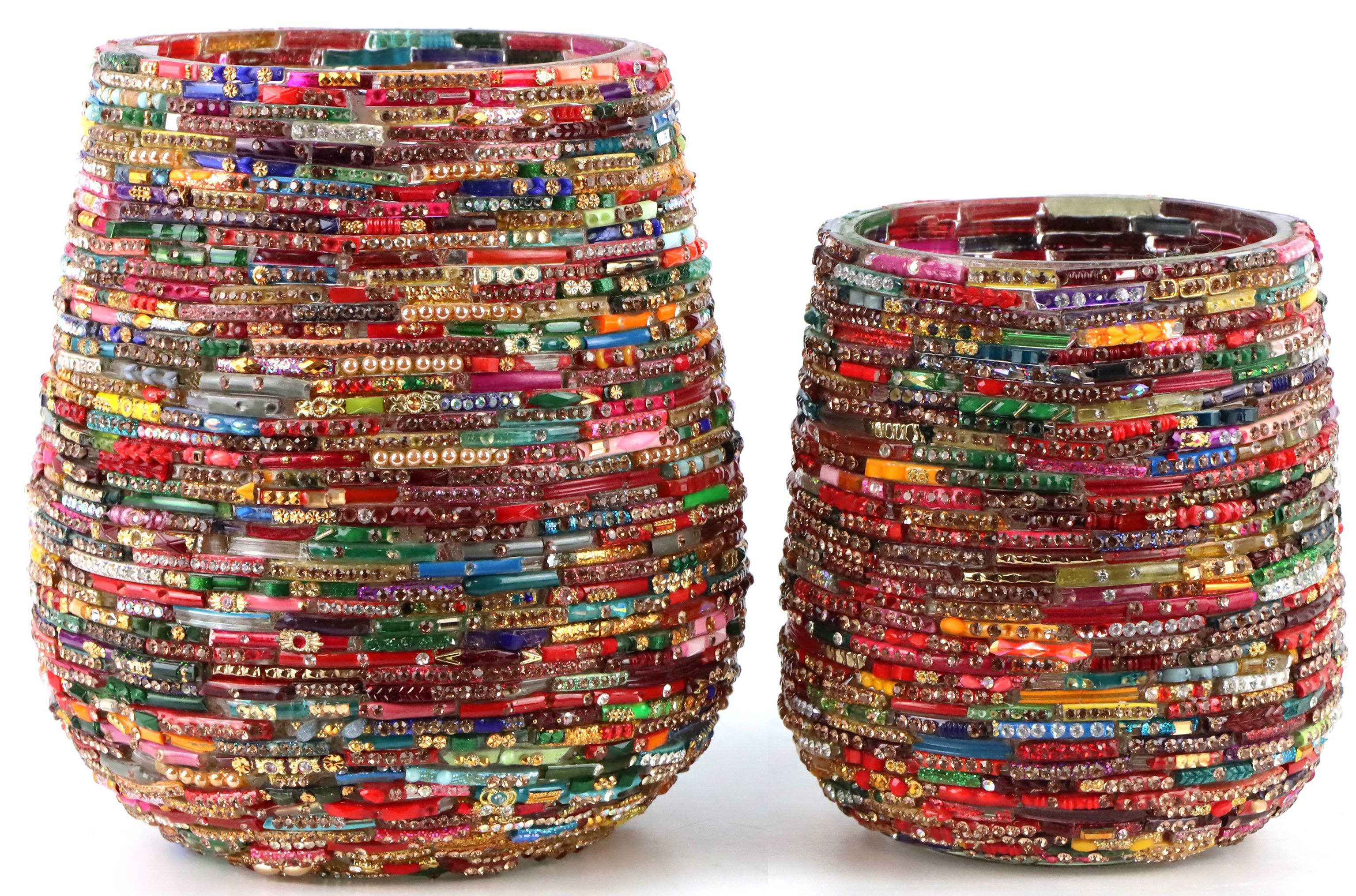 - Set bestehend aus zwei unterschiedlich großen Windlichtern (ca. 12cm und 16cm hoch)