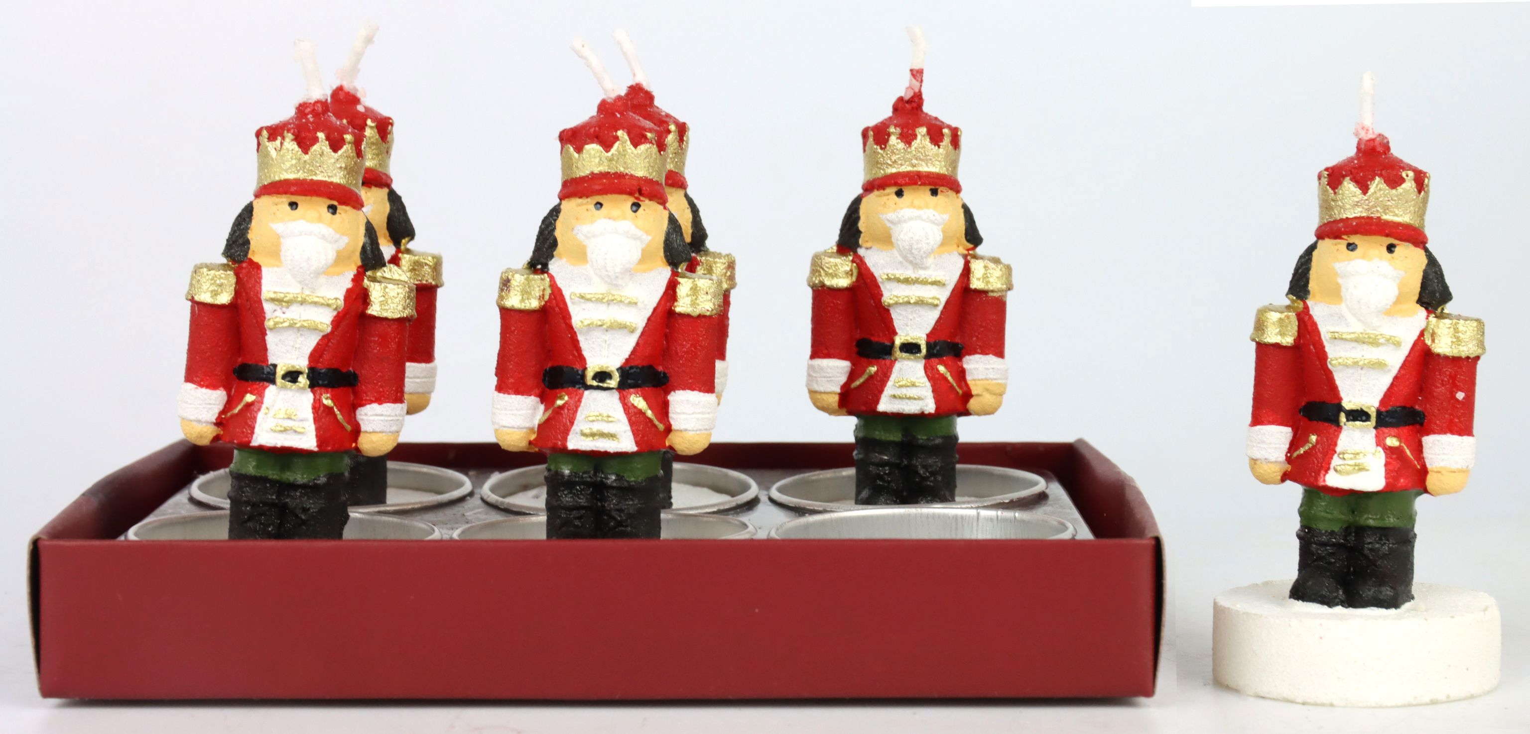 Gefertigt aus hochwertigem Kerzenwachs, gewährleisten die Teelichter eine gleichmäßige Abbrenndauer, die für stundenlangen Genuss sorgt. Die detailreiche Nussknacker-Ausführung zieht alle Blicke auf sich und ist ein echter Hingucker - eine perfekte Ergänzung für jedes weihnachtliche Sortiment im Wohn- und Lifestyle-Bereich.
