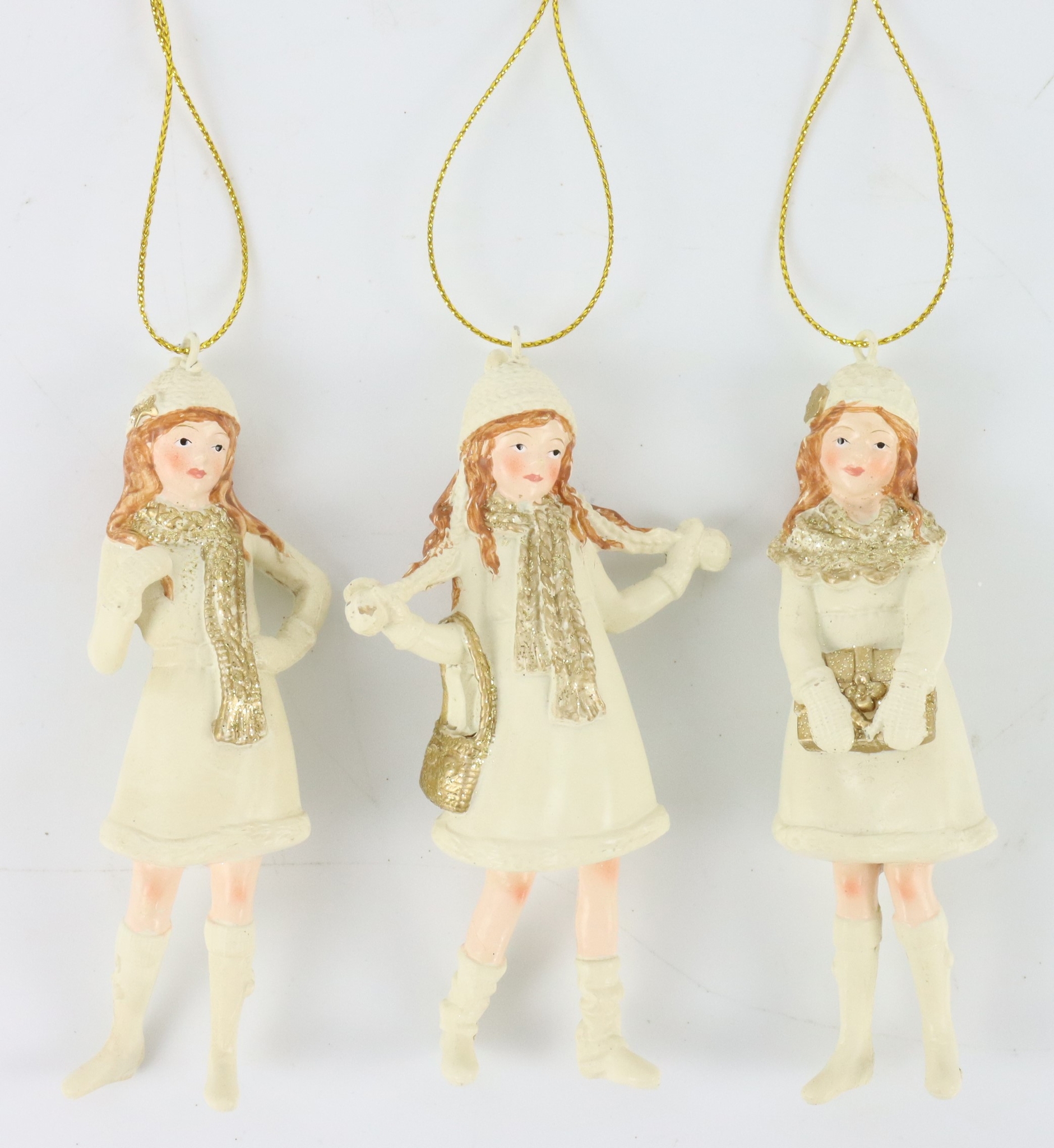 Erleben Sie die besondere Magie der Weihnachtszeit mit unserem exquisiten Zierhänger-Set "Jultime". Dieses dreiteilige Set, bestehend aus zauberhaften Mädchenfiguren, bringt einen Hauch nordischen Charmes in jedes Zuhause und ist speziell für den stationären Einzelhandel im Bereich Wohnen und Lifestyle zugeschnitten. Die detailreich gestalteten Zierhänger sind aus robustem Polyresin gefertigt und überzeugen durch ihre hohe Qualität und Beständigkeit. Mit einer Größe von jeweils ca. 11 cm eignen sie sich ideal zur festlichen Dekoration von Weihnachtsbäumen, Fensterdekorationen oder als stilvolle Ergänzung in Verkaufsräumen.