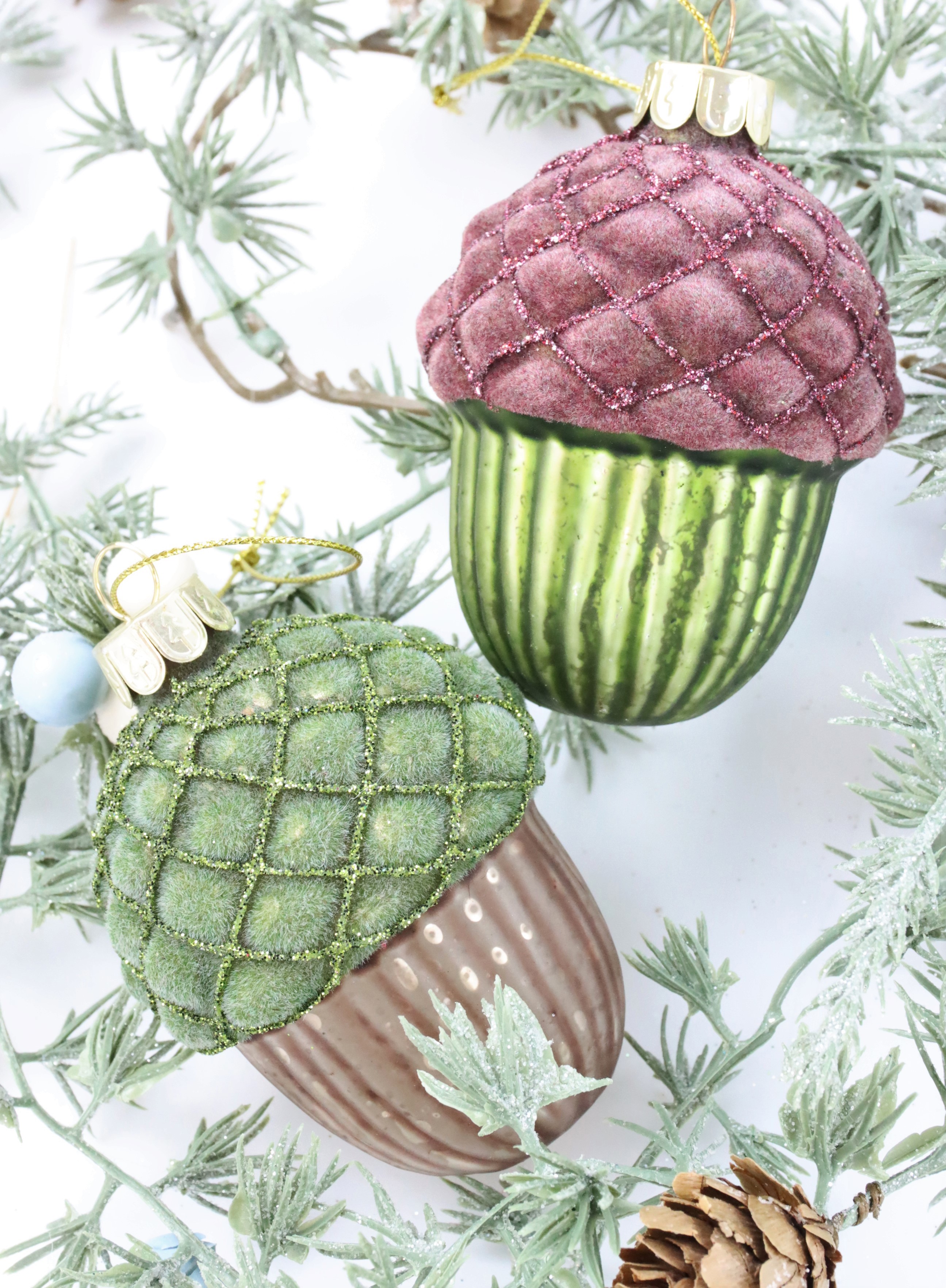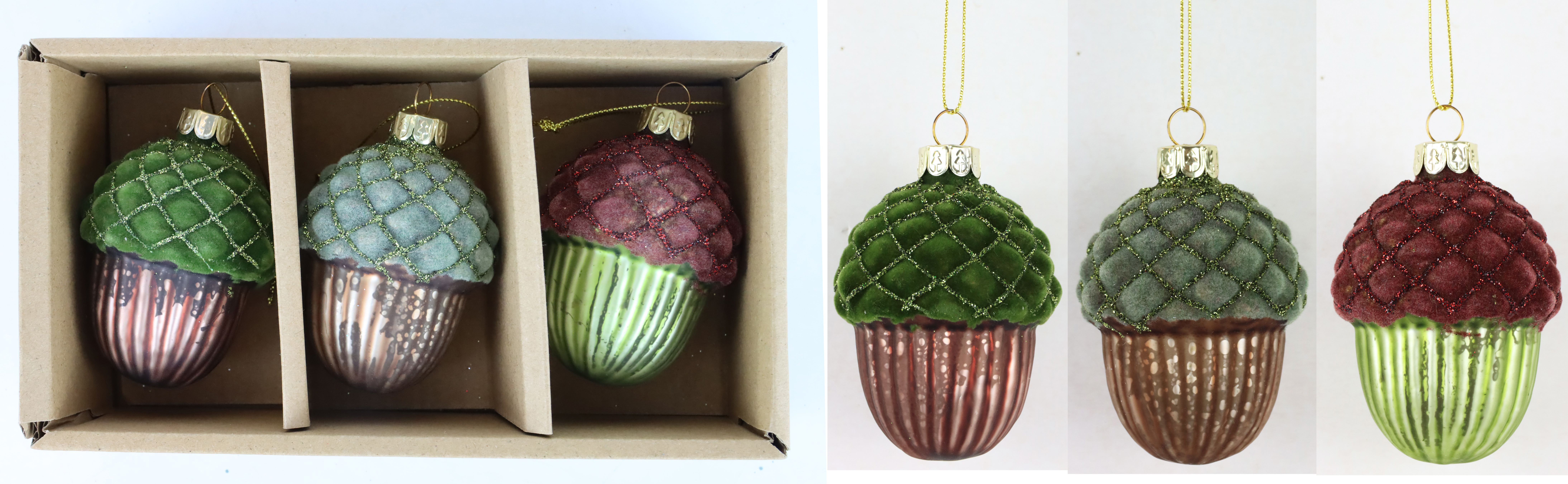 Hochwertiger Glasschmuck, Weihnachtsdekoration, handgefertigter Schmuck, Weihnachtsbaum Dekoration, grüne Eiche, Weihnachten, Lifestyle, Wohnaccessoires, Weihnachtsgeschenk, festliches Ambiente.