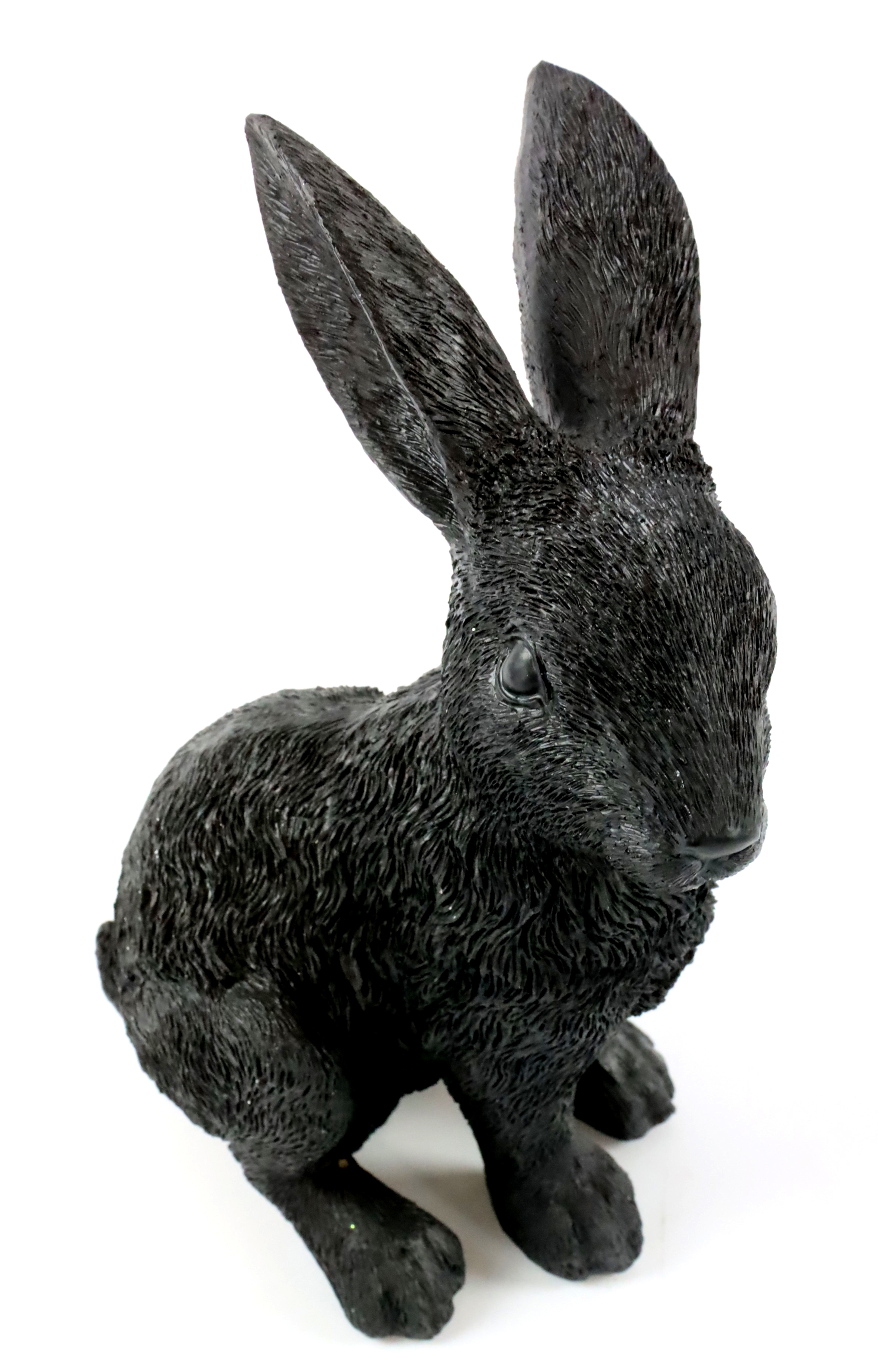 - **Elegantes Design**: Schwarzer Hase aus Polyresin, ca. 22cm hoch, ideal für moderne Osterdekorationen.