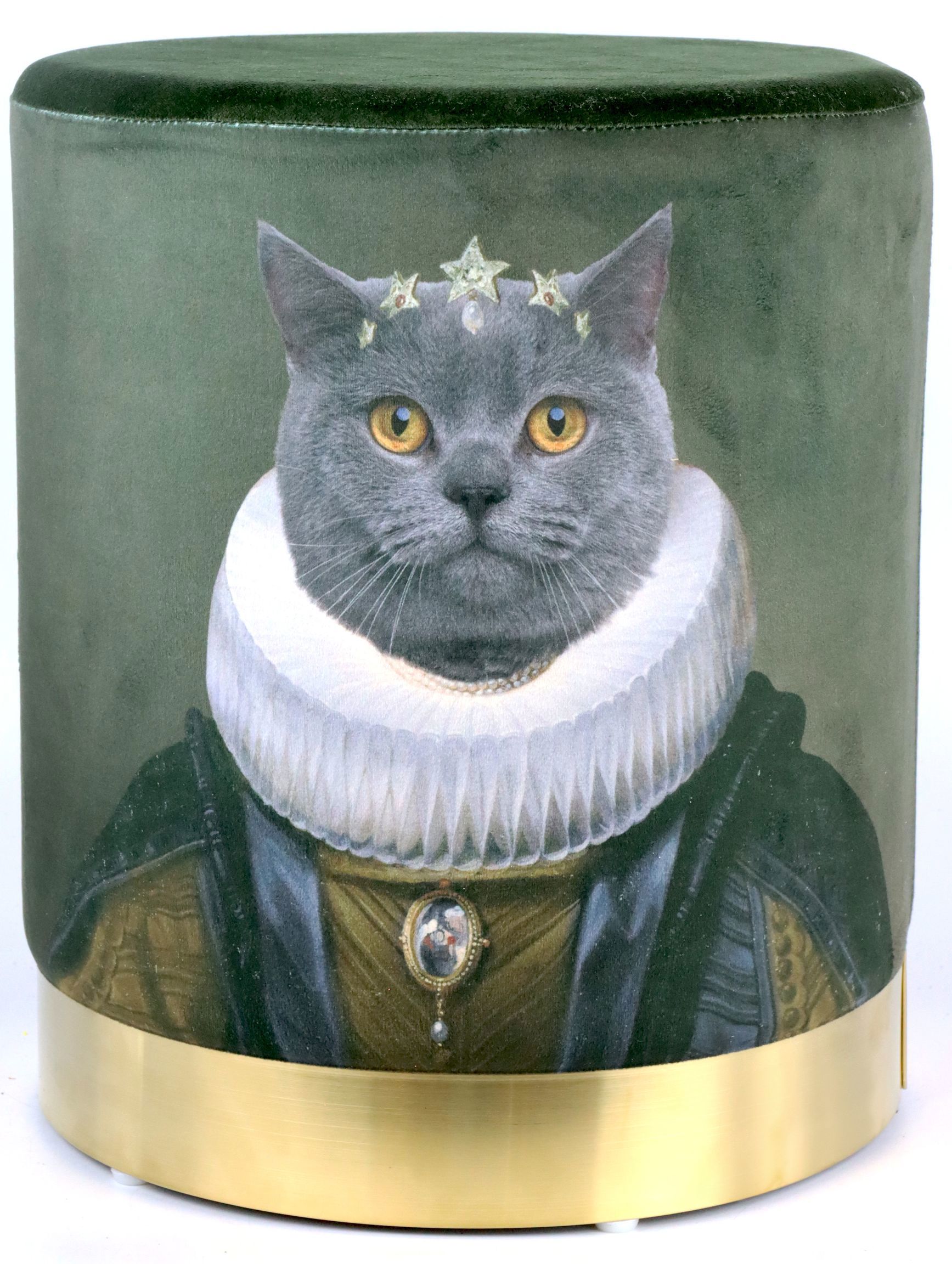 Matching keywords: buy pouf, pouf green, pouf "Queen of Cats", home accessories, retail living.