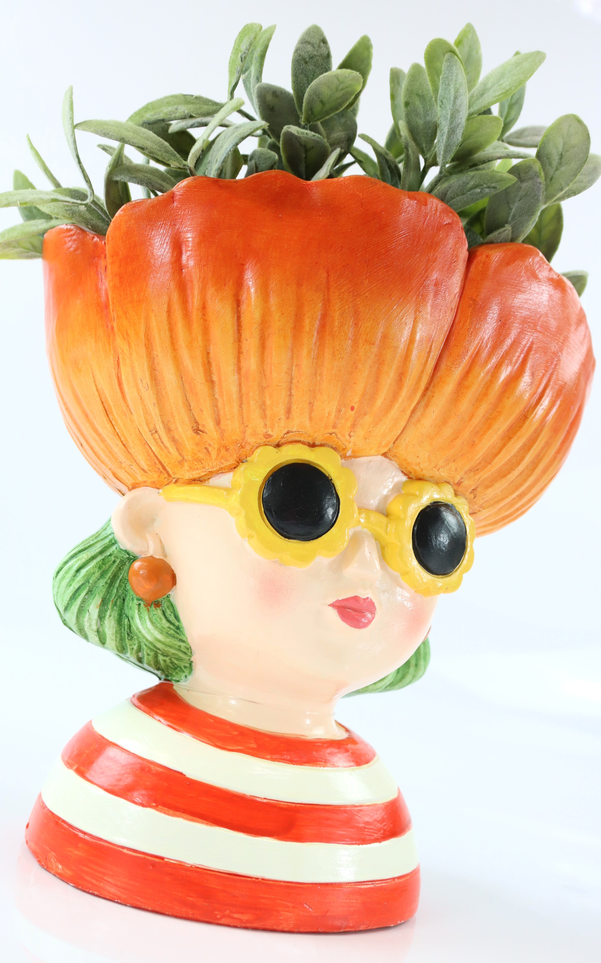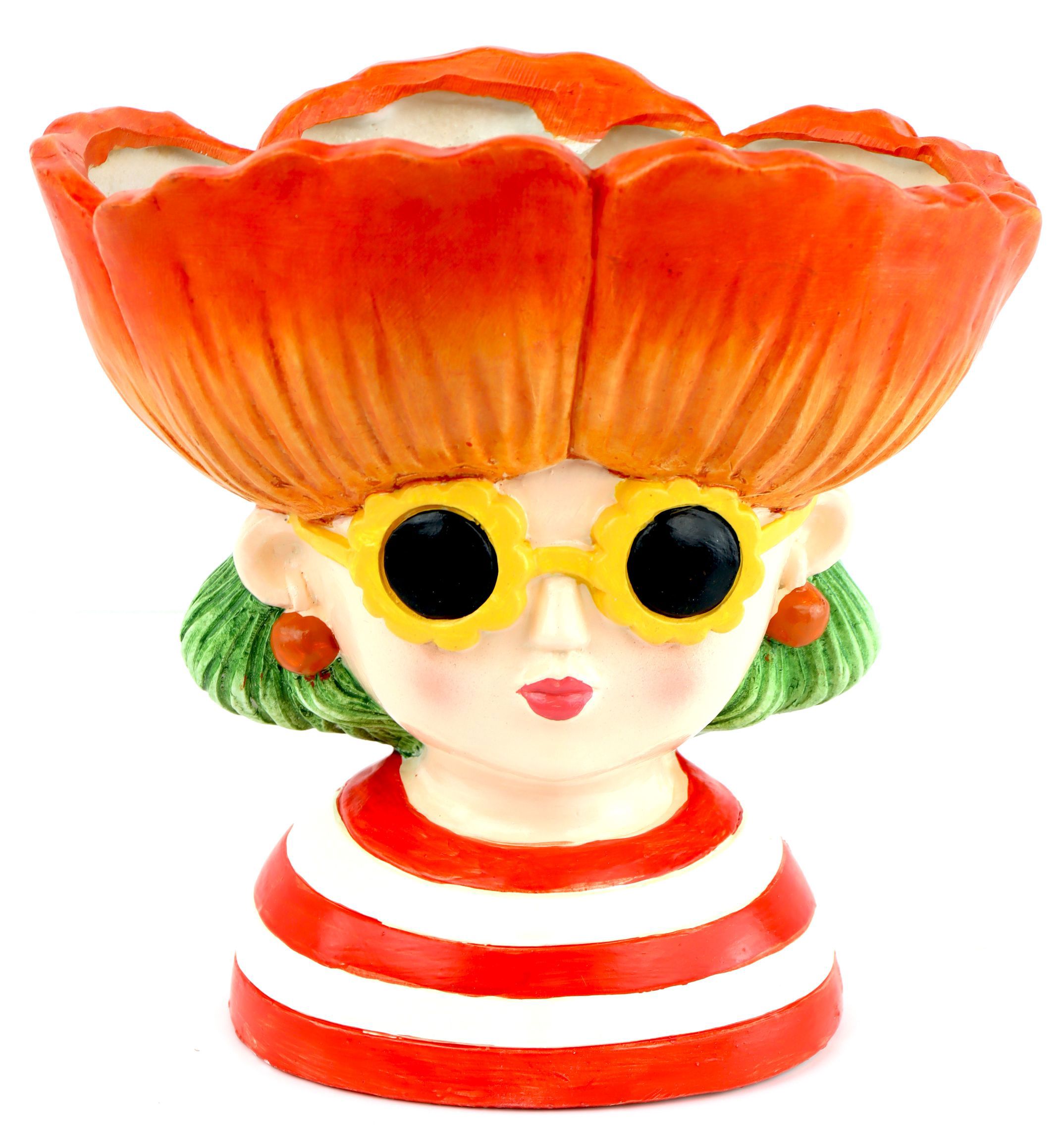 The "Poppy Girl" is a uniquely designed plant object in the shape of a woman's head, skilfully decorated with a bright red flower. Made from high-quality magnesia, it is not only a real eye-catcher but also extremely durable. With a height of approx. 21 cm, it is the ideal size to be used as a decorative element on a table or shelf. Your customers will be delighted by the graceful combination of art and nature.