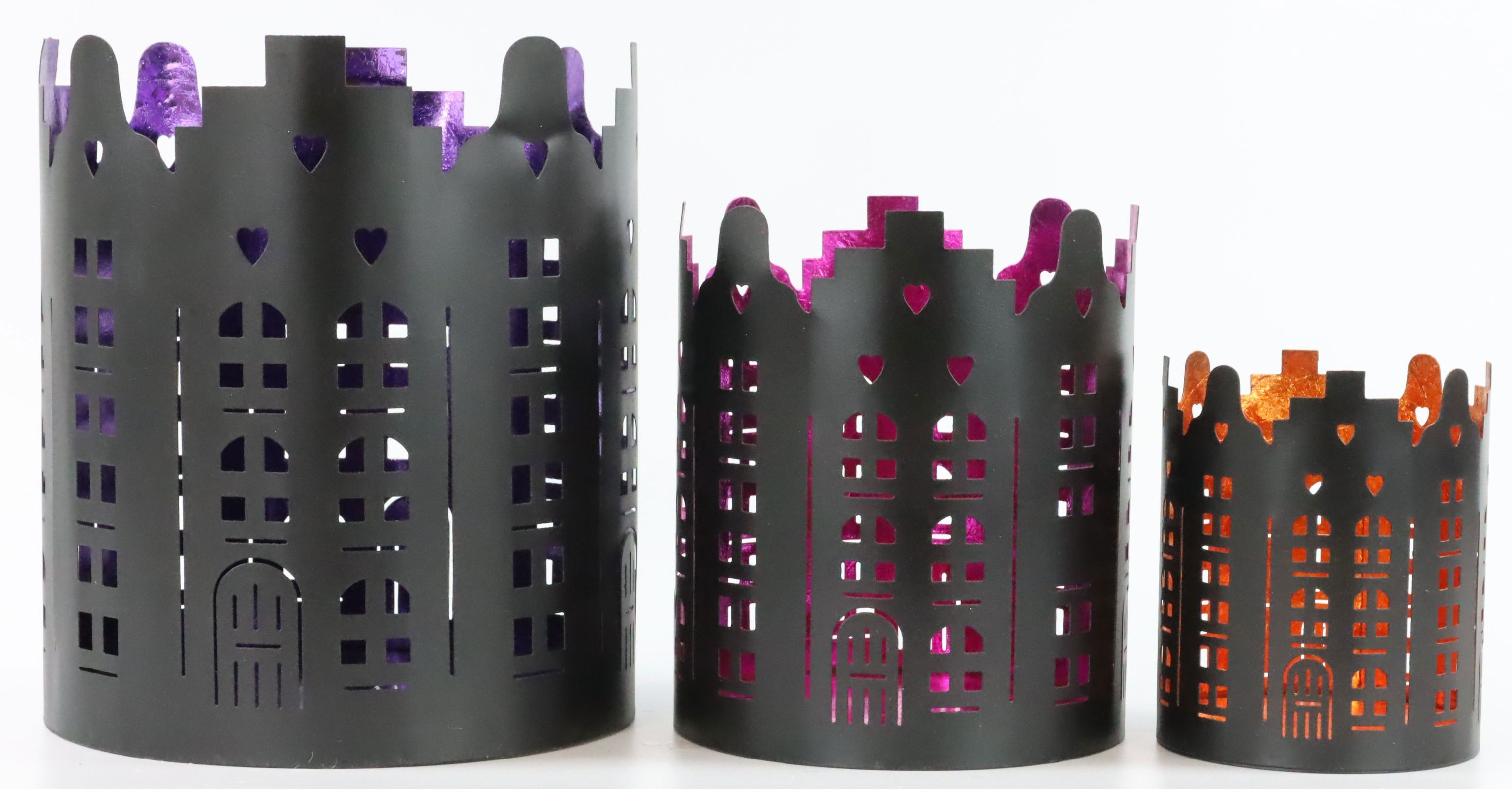 Discover our exclusive WIND LIGHTS "CITY" S/3 set - the perfect home accessory for the autumn and winter season. This three-piece set consists of artistically designed lanterns in the vibrant colours purple, pink and orange. The design of these lanterns will not only add colour to your living space, but also a warm and inviting atmosphere. Your customers will be delighted by the charming combination of urban style and functional design.