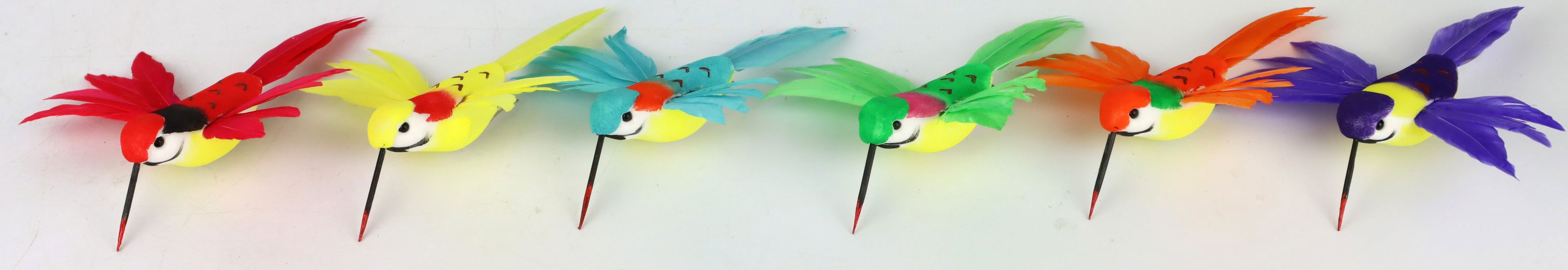 - Delicately designed birds made of polystyrene and artificial feathers