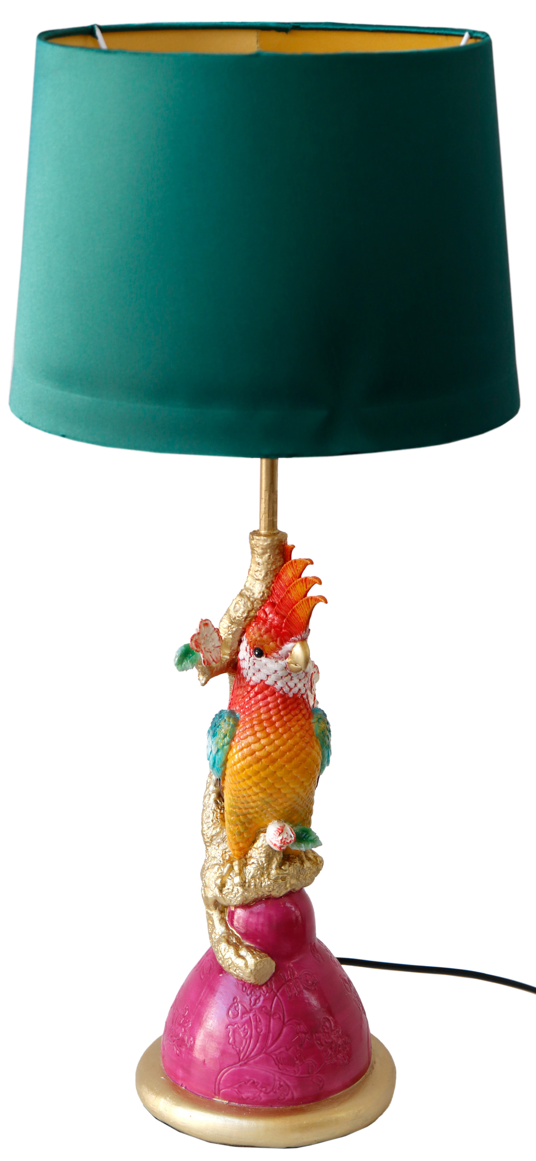 - Unique design with cockatoo lamp base