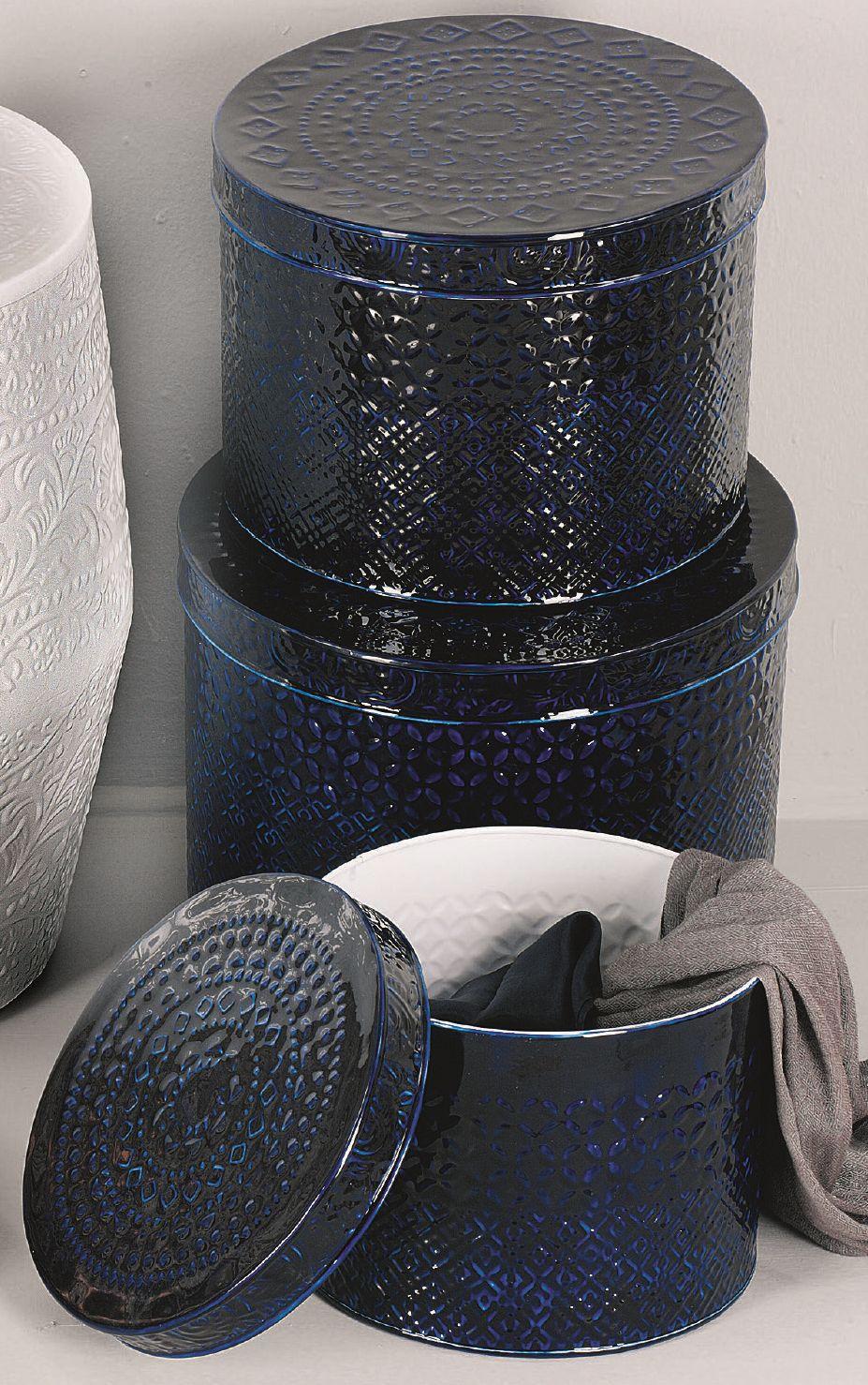 Experience the perfect combination of functionality and style with our "Fès" tin can set. This three-piece set not only offers you practical storage solutions, but is also an aesthetic eye-catcher that will set the tone in any of your customers' rooms. The tin cans are designed in a sophisticated blue colour and fit seamlessly into modern living concepts, making them an ideal range for retailers in the home and lifestyle sector.