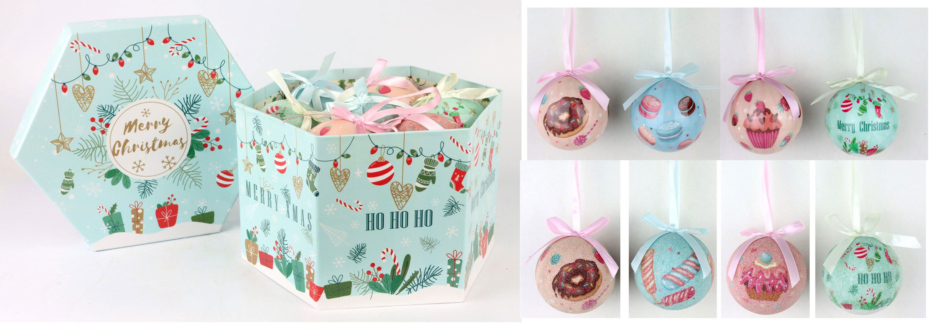 Key words: bauble box, Christmas decoration, polyfoam, stationary retail, home and lifestyle sector, gift box, candy style, Christmas baubles, article number 4563.