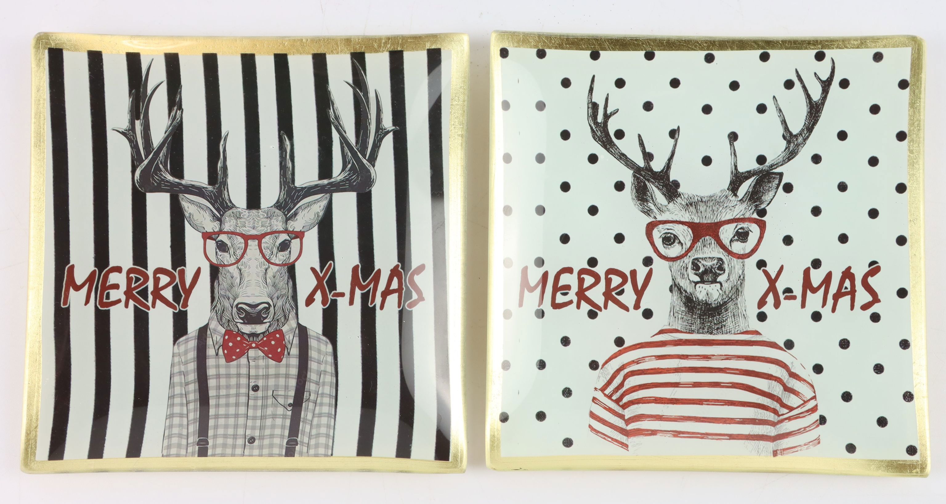 Consisting of a two-piece set, the glass plates with their creative and funny deer design are a real highlight for Christmas table decorations. Their rectangular shape and dimensions of 15x15 cm make them the perfect serving plates for snacks, biscuits or as decoration, emphasising the festive ambience.