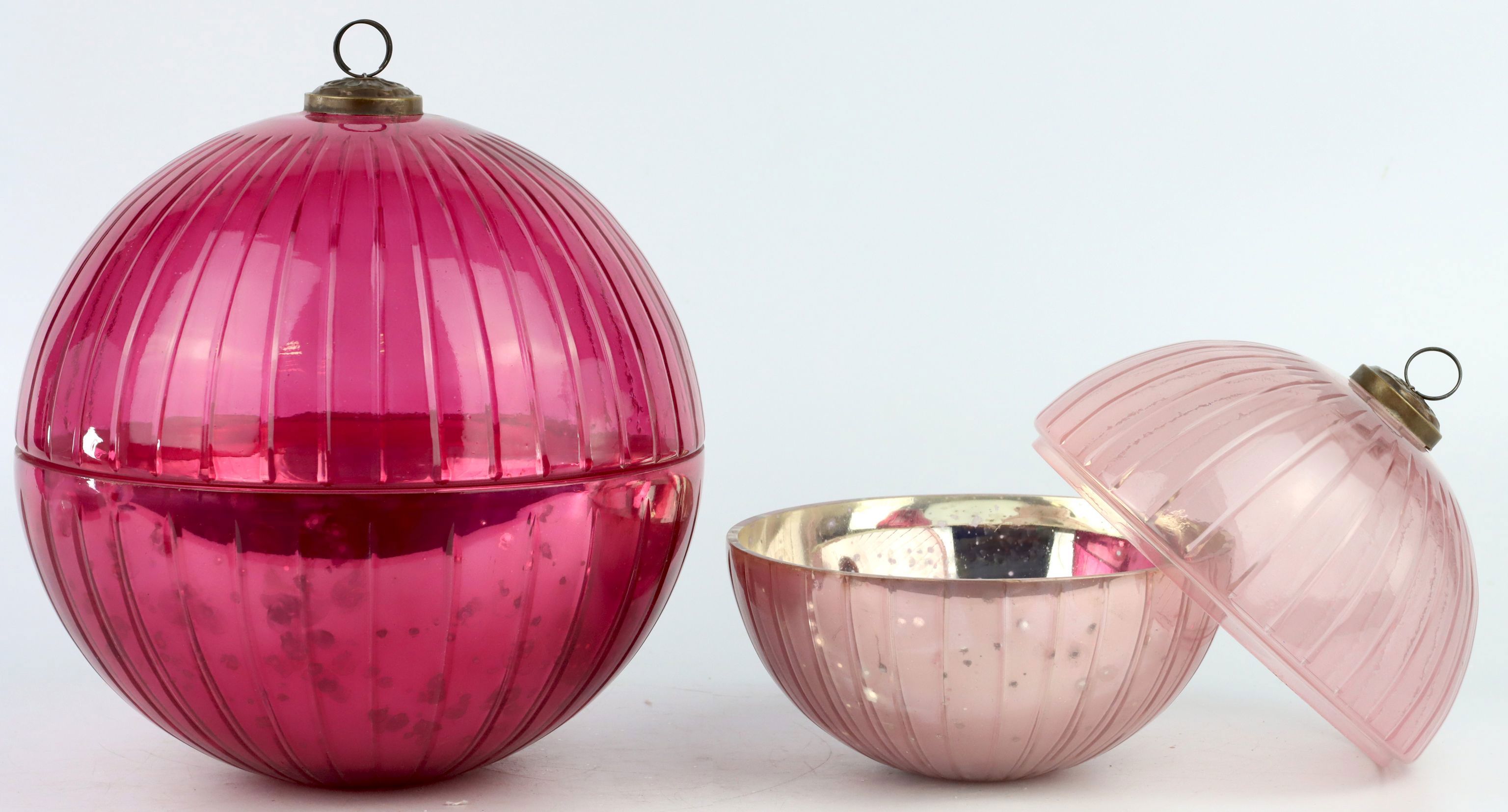 ENDiscover our enchanting two-piece glass jar set "Carnival". These extraordinary items (item number 4053), are a fantastic addition to any home and lifestyle retailer who wants to offer their customers unique and stylish decorations. Especially at Christmas time, these pink glass jars provide a visual highlight and conjure up a festive atmosphere.