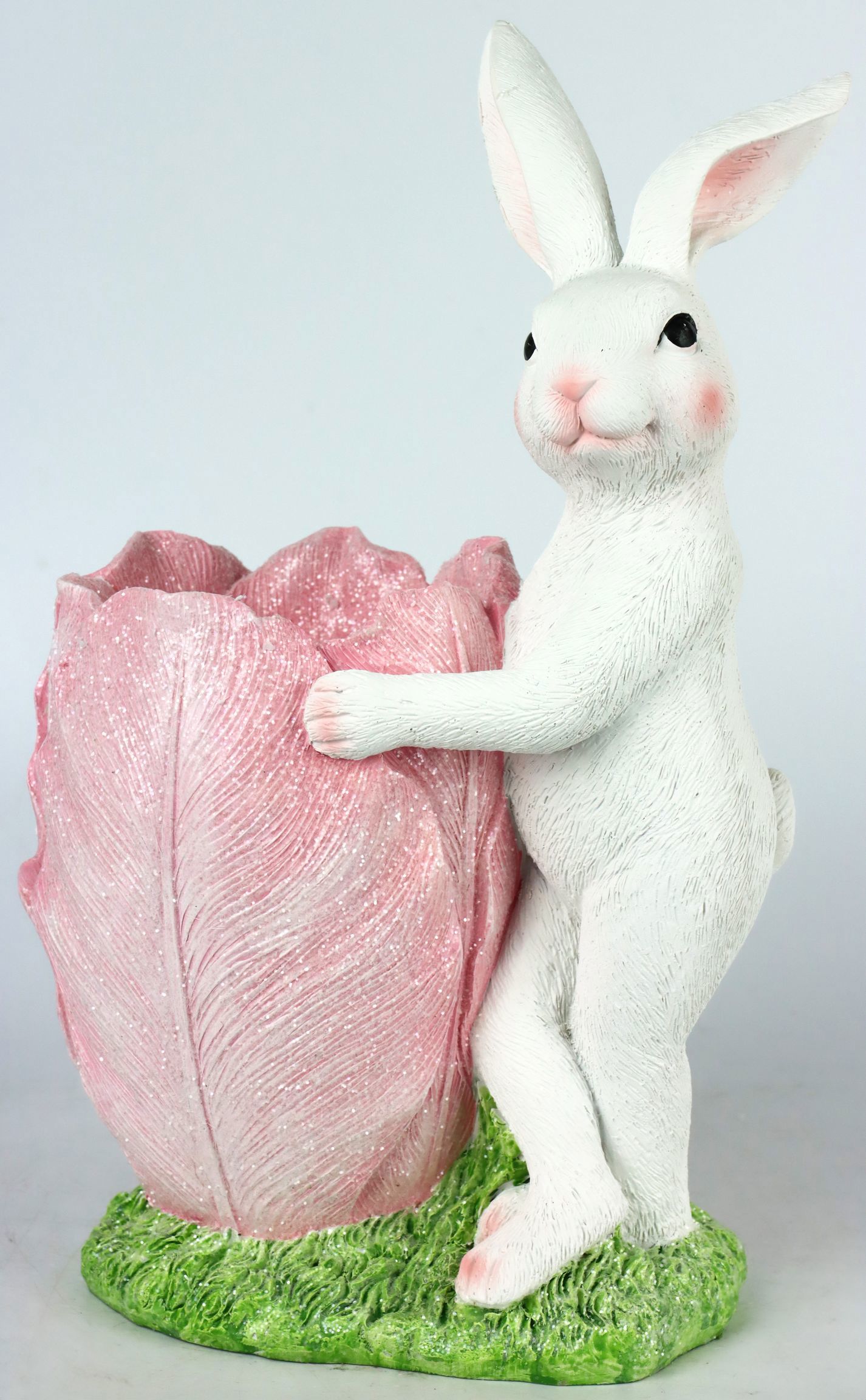 ENExperience a piece of Easter magic in your living area with our exclusive "Blütentraum" bunny butler. This enchanting decorative element made of high-quality polyresin combines elegant craftsmanship with a touch of playful charm that fits perfectly into any home and lifestyle interior. With an impressive height of around 30 cm, the bunny butler attracts everyone's attention and creates a festive atmosphere in any room.