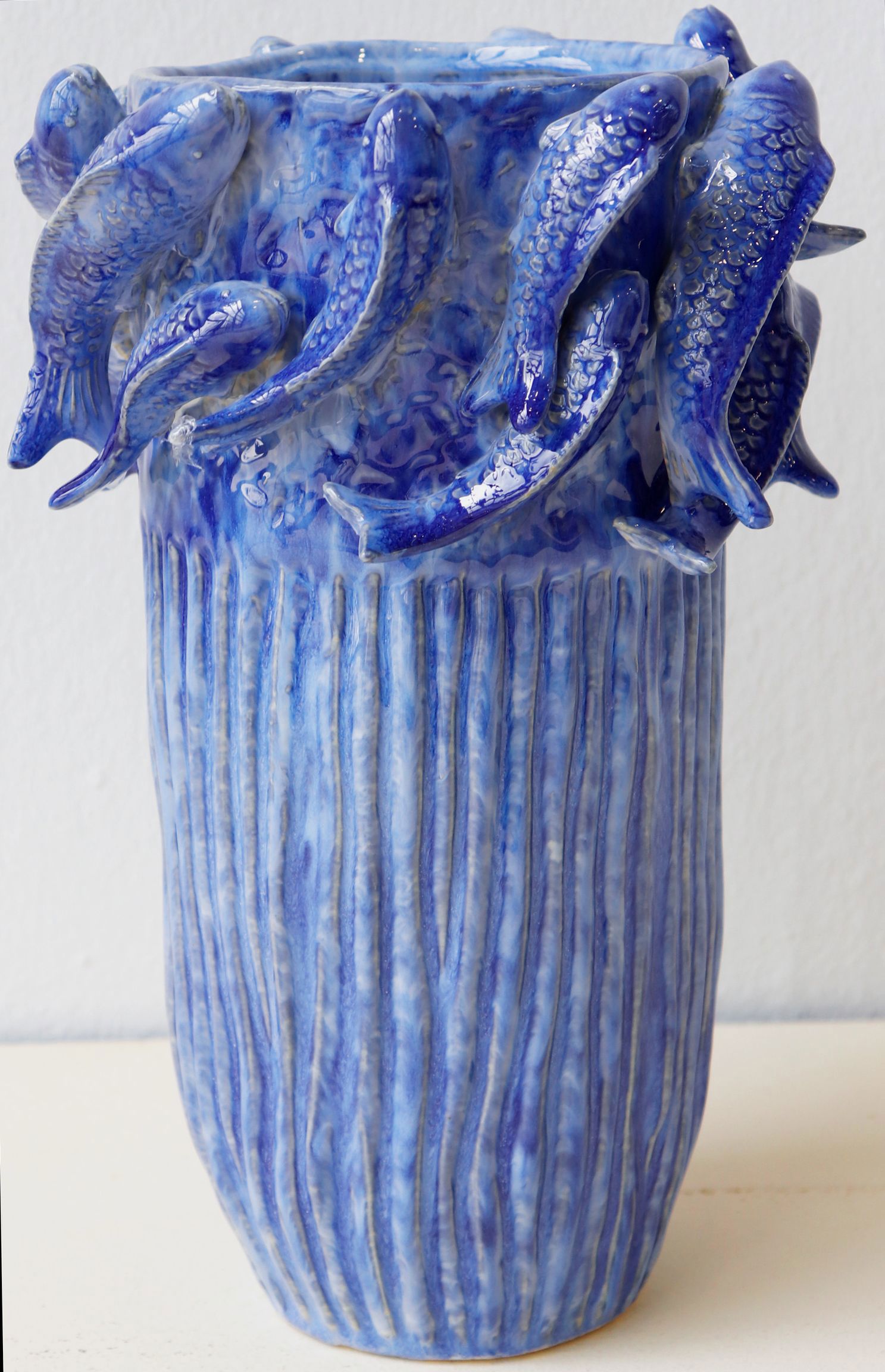 EN**Product description for "FISHERY" vase pot in blue - The perfect addition to a stylish living room**