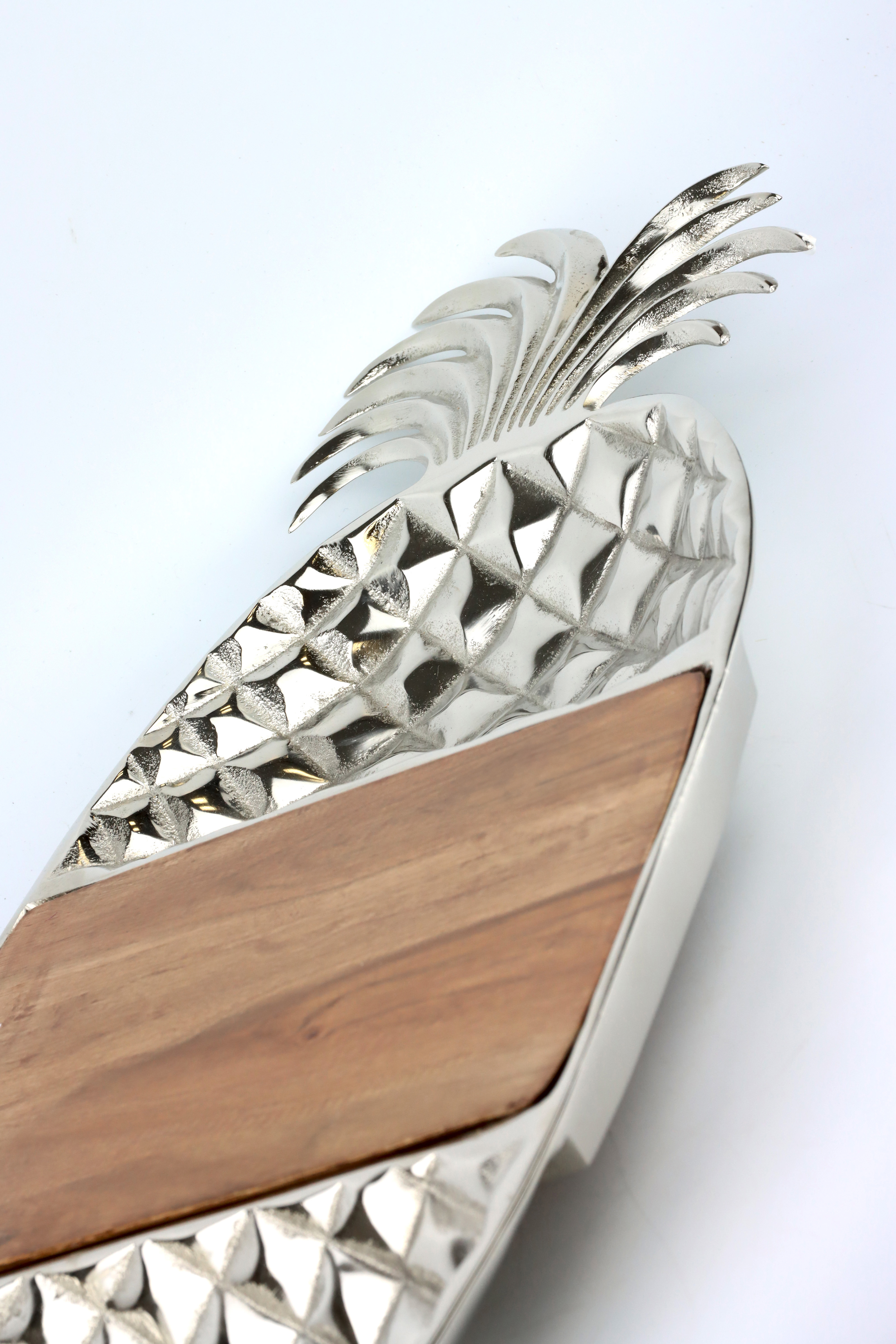 Nuestro exclusivo cuenco tablero "Piña" (nº de artículo: 5096) es el complemento perfecto para cualquier hogar o negocio con estilo del sector del hogar y el estilo de vida. Este original cuenco, con forma de piña tropical, combina funcionalidad con un toque fresco y exótico. Es ideal para presentar fruta, aperitivos u otros elementos decorativos, convirtiéndolo en un elemento destacado para cualquier mesa o expositor.