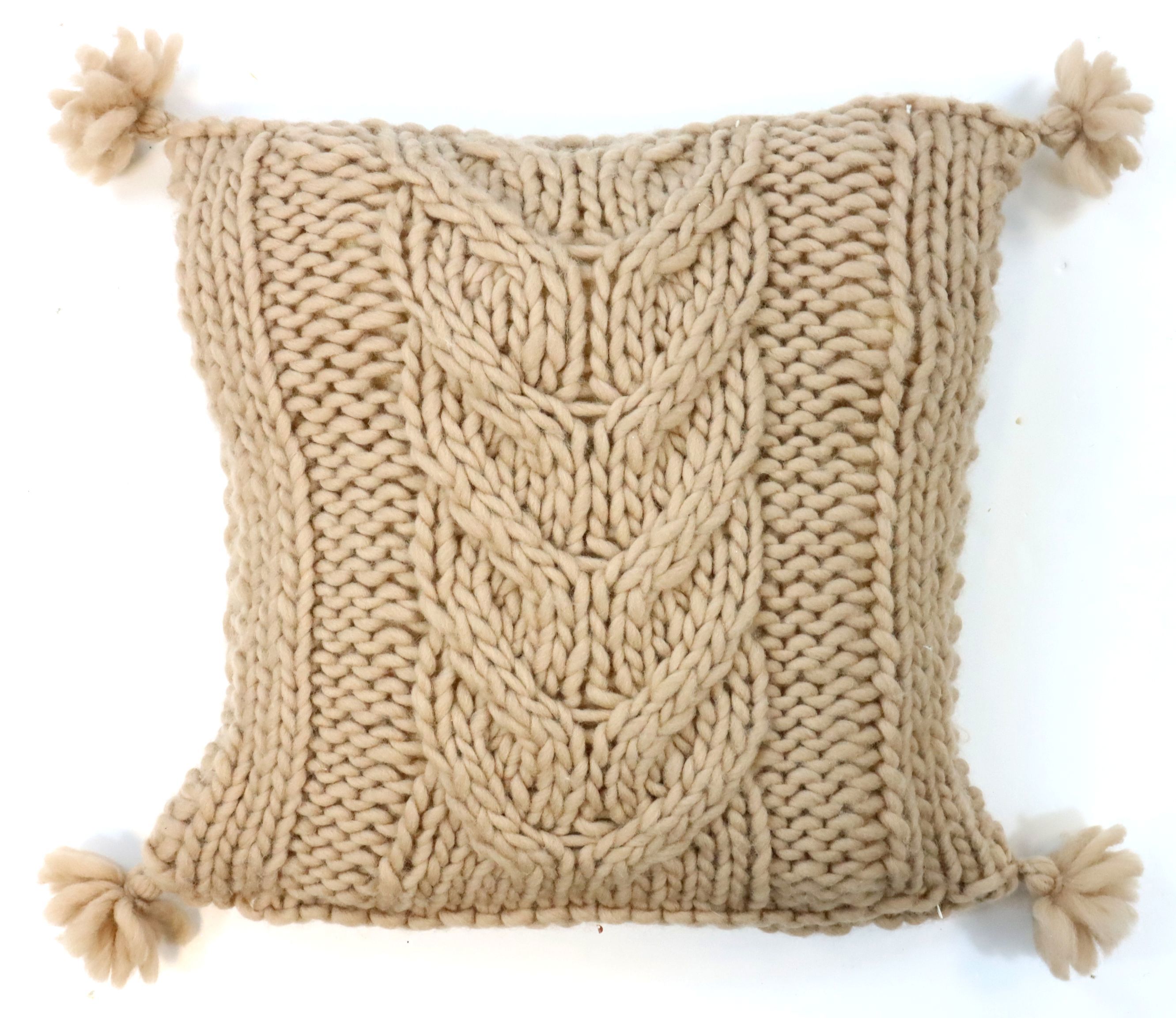 Compra la funda de cojín de punto "Chalet" en color caramelo para tu casa o como regalo. Es un complemento moderno y con estilo que transmite elegancia y comodidad.