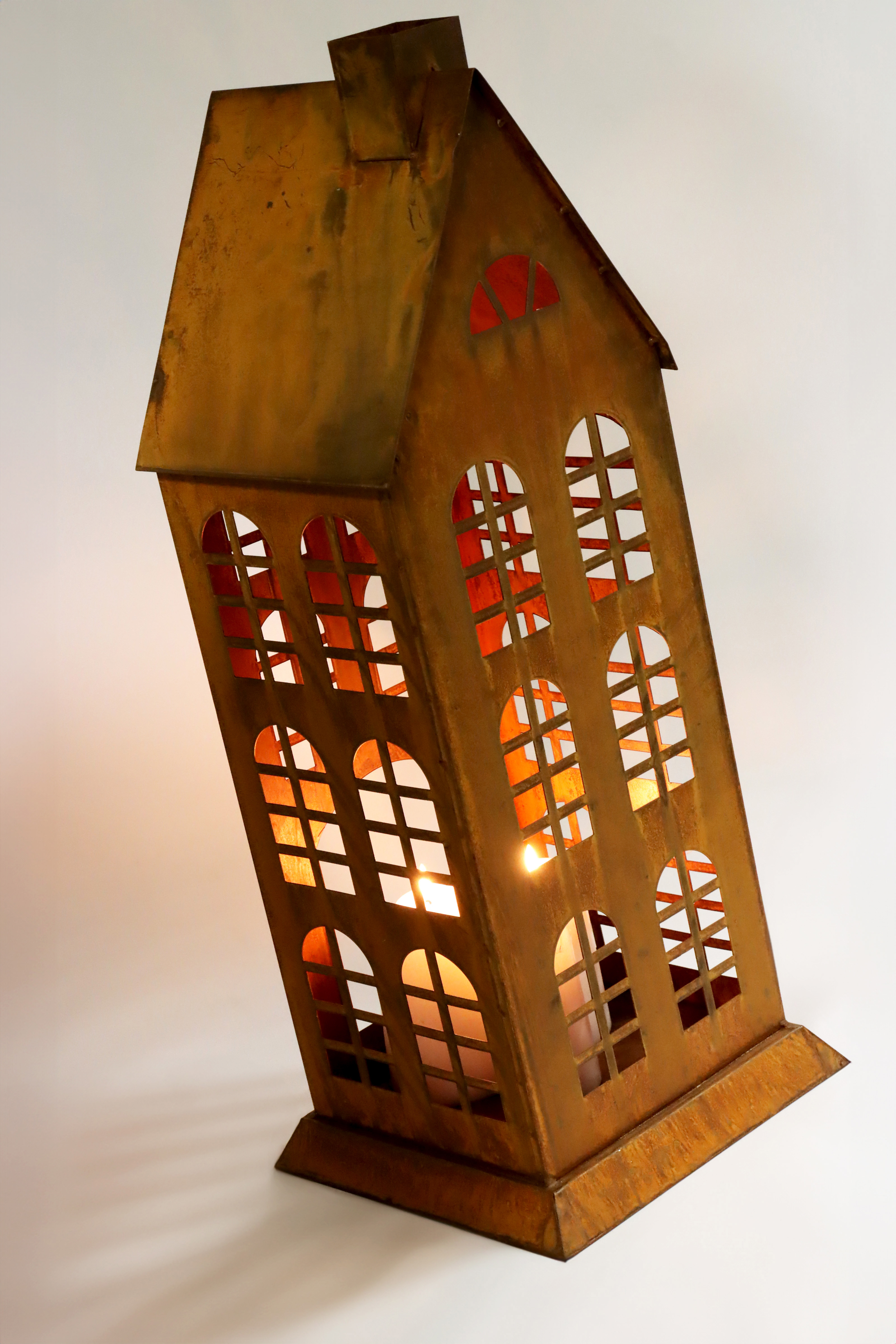 La casa-linterna "La Ville", número de artículo 7286, está hecha de hierro robusto y viene en un color oxidado que hace que el diseño general del artículo sea vintage y único. Tiene una altura considerable, de unos 65 cm, por lo que atrae todas las miradas en cualquier habitación.