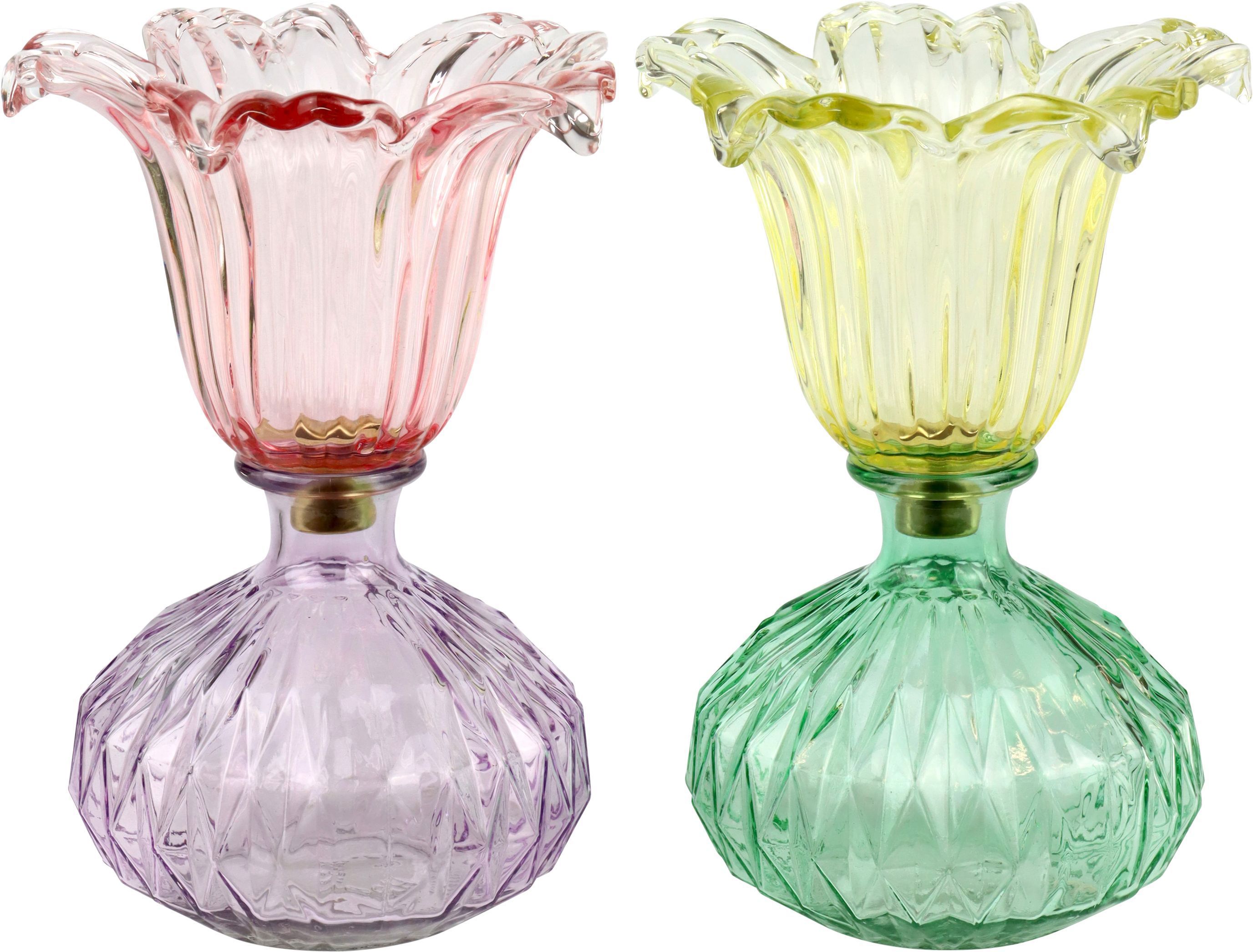 - Juego de dos piezas de cristal de colores para una decoración alegre