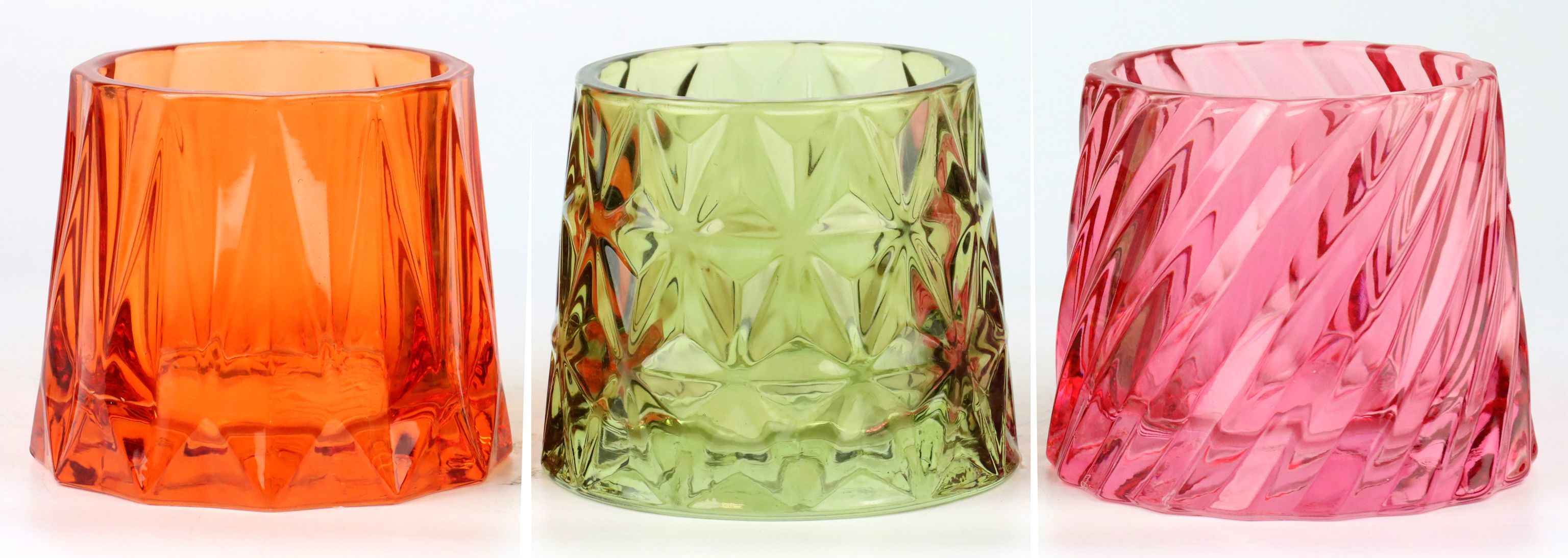 - Juego de tres piezas de cristal de alta calidad en vivos colores