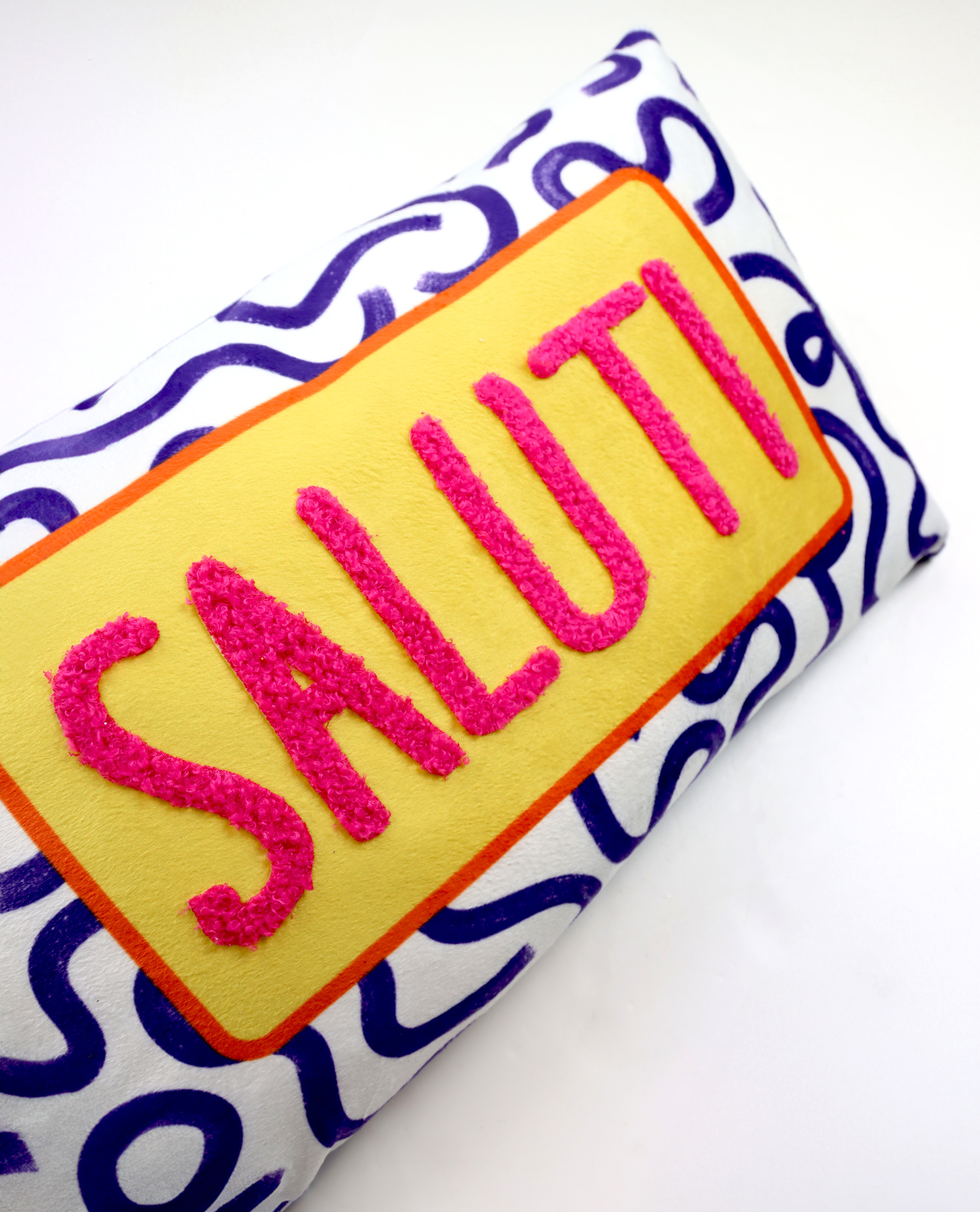 - Alegría de vivir a la italiana:** Las letras "Saluti" invitan a ponerse cómodo.