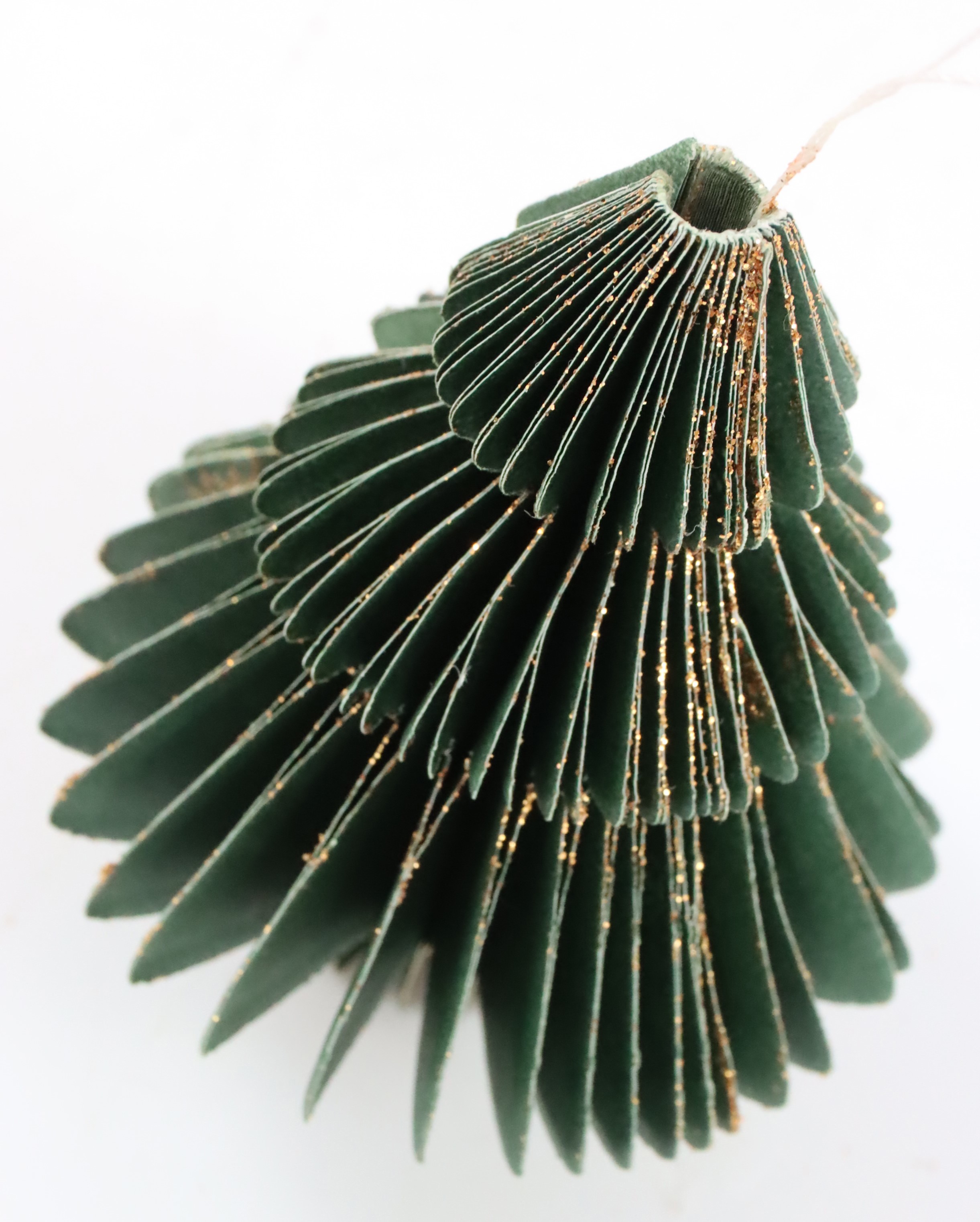 - Encantador juego de tres colgantes de papel verde plegable con borde dorado.