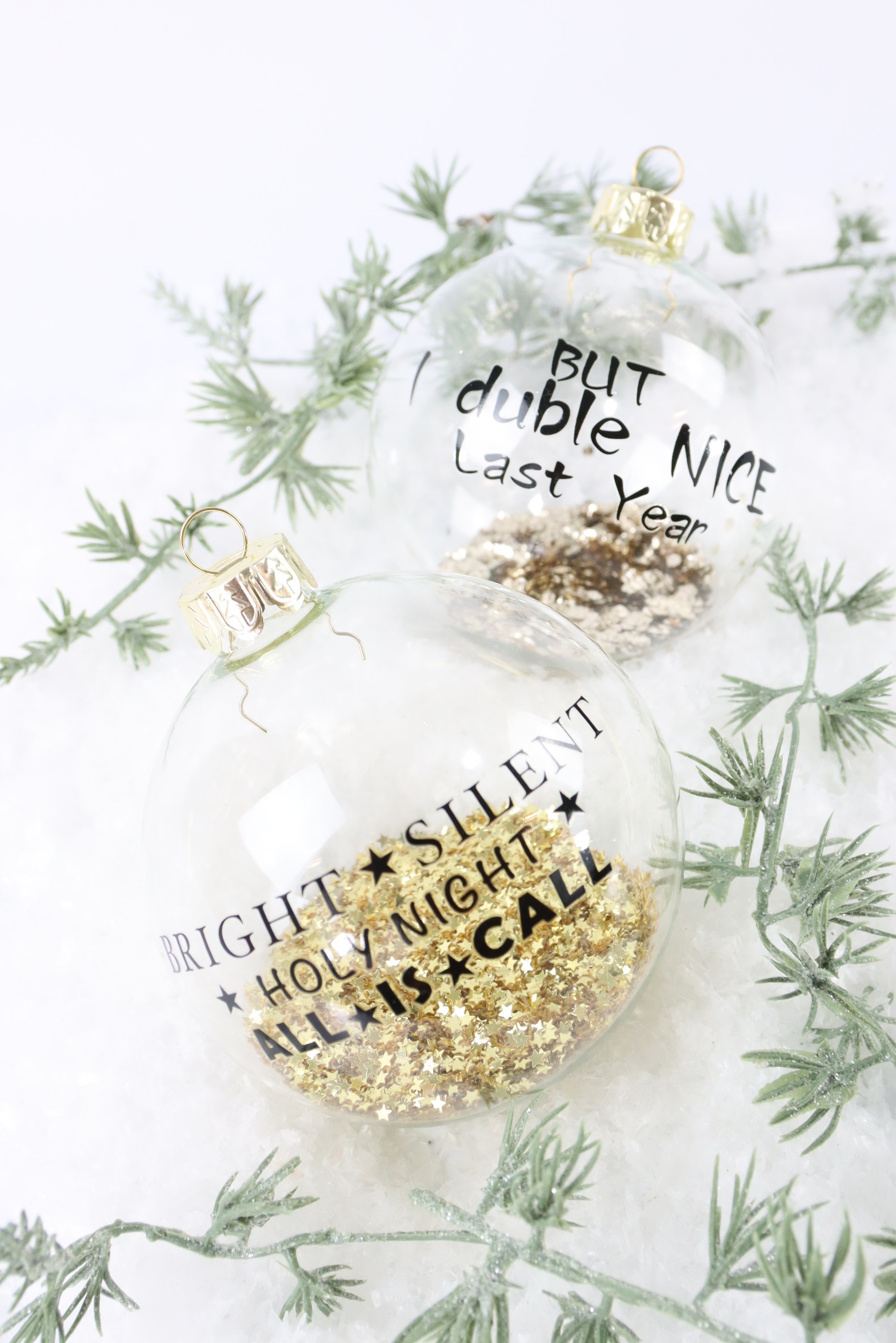 Añada un toque de magia a su decoración navideña con nuestro juego de 6 bolas de cristal "GLITZER" de alta calidad. Estas elegantes bolas transparentes de 8 cm de diámetro tienen un sutil efecto de purpurina y aportan un toque brillante a su árbol de Navidad o a sus adornos.