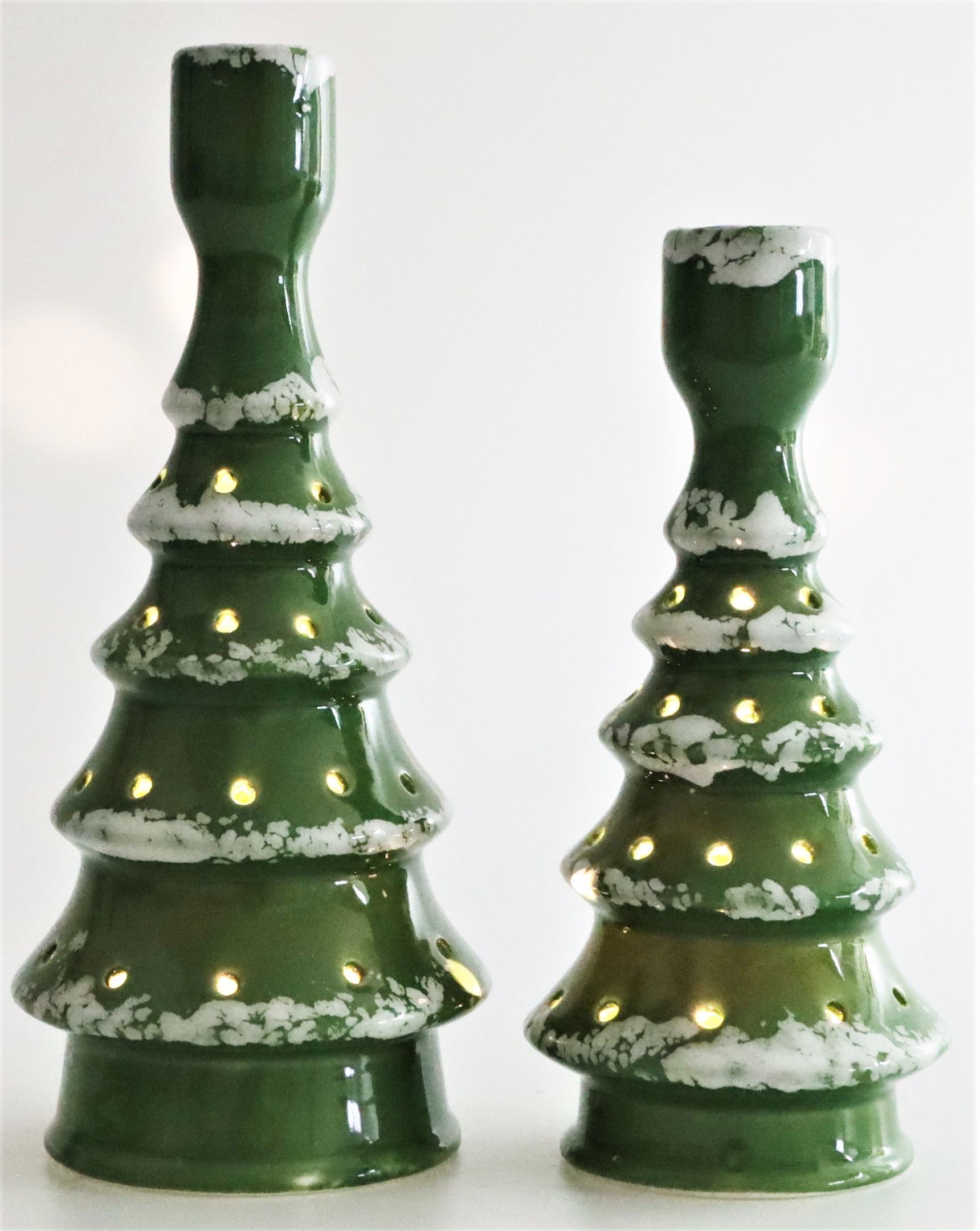 - Juego de 2 candelabros de árbol LED en elegante color verde