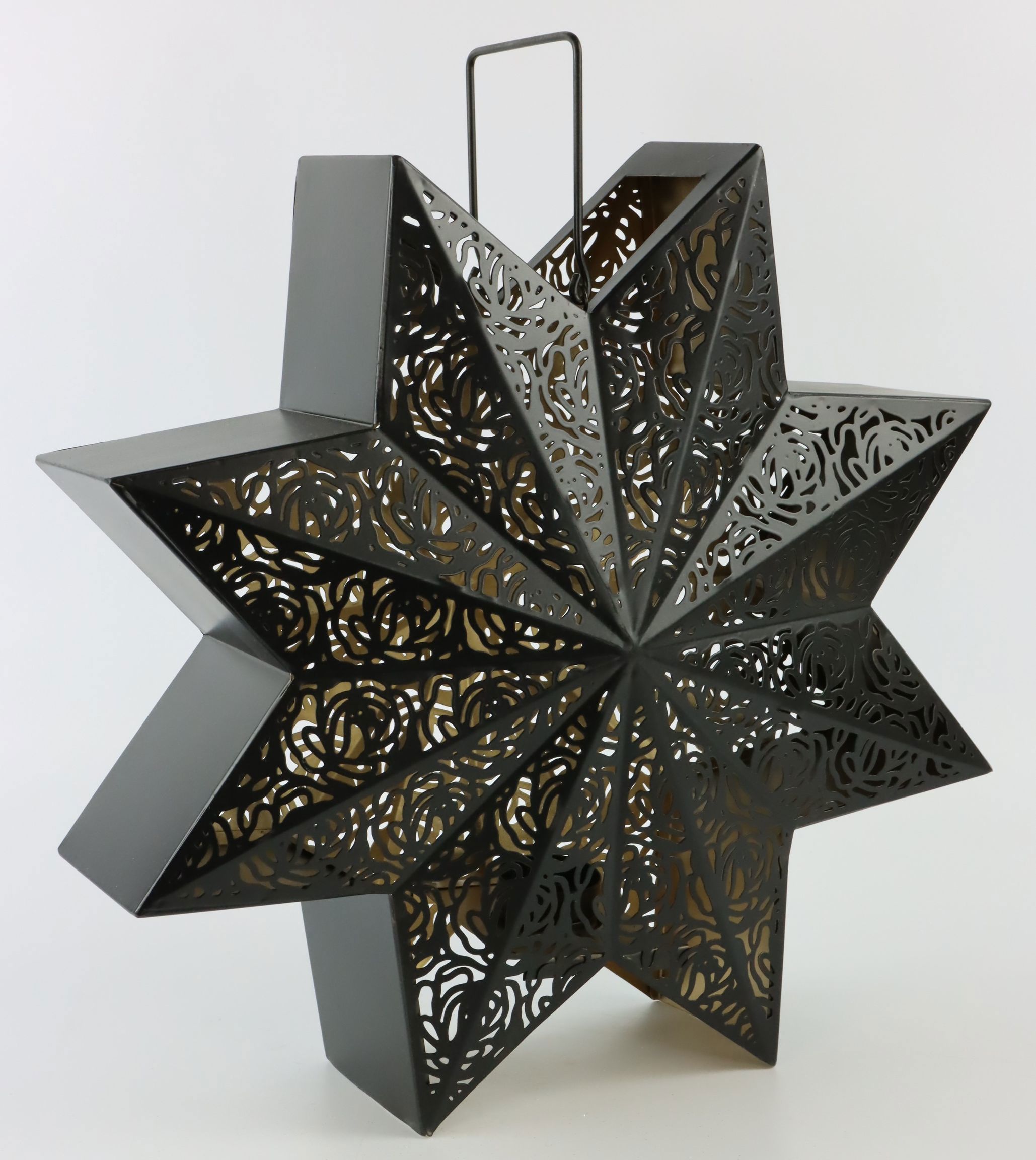 El farolillo estrella "Étoile" se ha fabricado en hierro con sumo cuidado y atención al detalle, e impresiona por su diseño minimalista y moderno. El color negro intenso del farolillo crea un ambiente sofisticado y elegante, y lo convierte en un verdadero centro de atención. Mide unos 37 cm y destaca con maestría sin molestar.