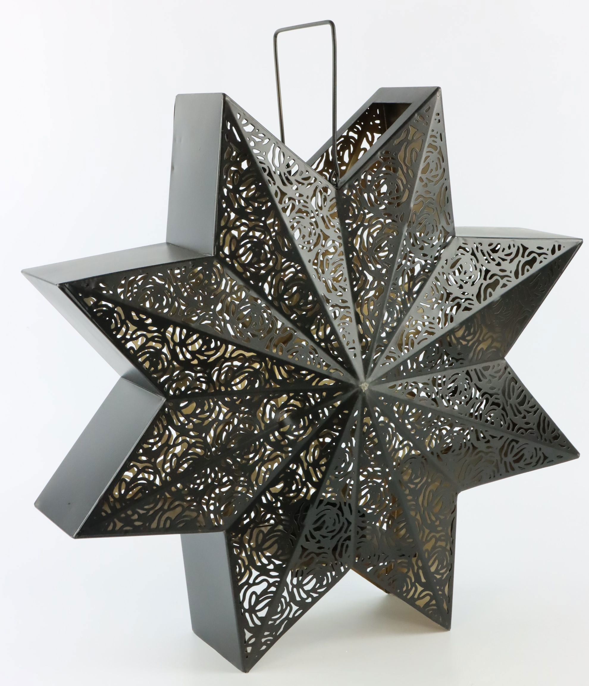 Palabras clave relevantes para SEO: linterna estrella, decoración navideña, accesorio navideño, venta al por menor, accesorio para el hogar, portavelas, producto de estilo de vida, hierro, negro, Navidad, hada navideña.