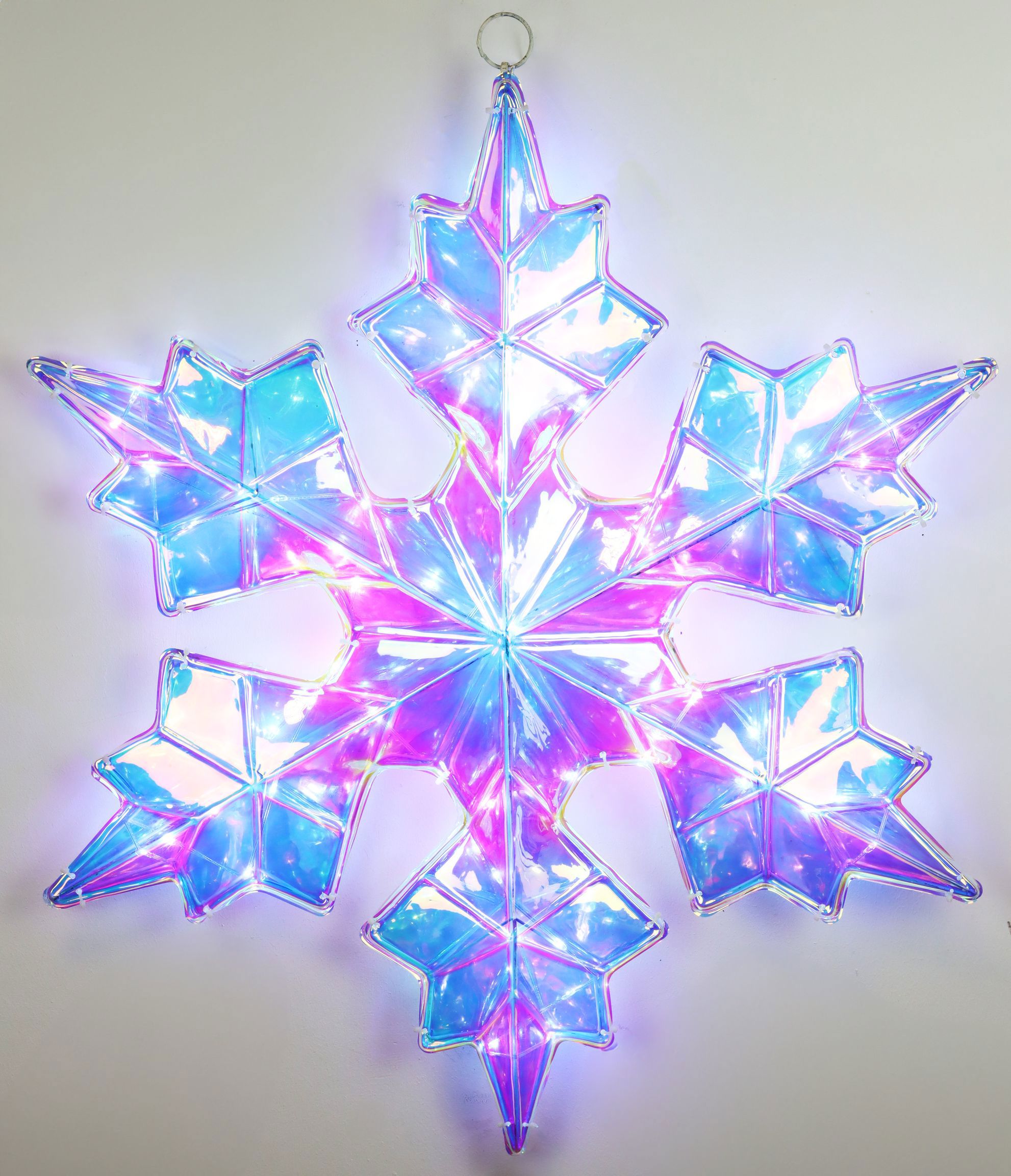 El copo de nieve LED está fabricado en plástico resistente, por lo que puede utilizarse en distintos lugares sin problemas. Es el reclamo perfecto para acentuar el ambiente festivo en su tienda y animar a sus clientes a mirar y comprar.