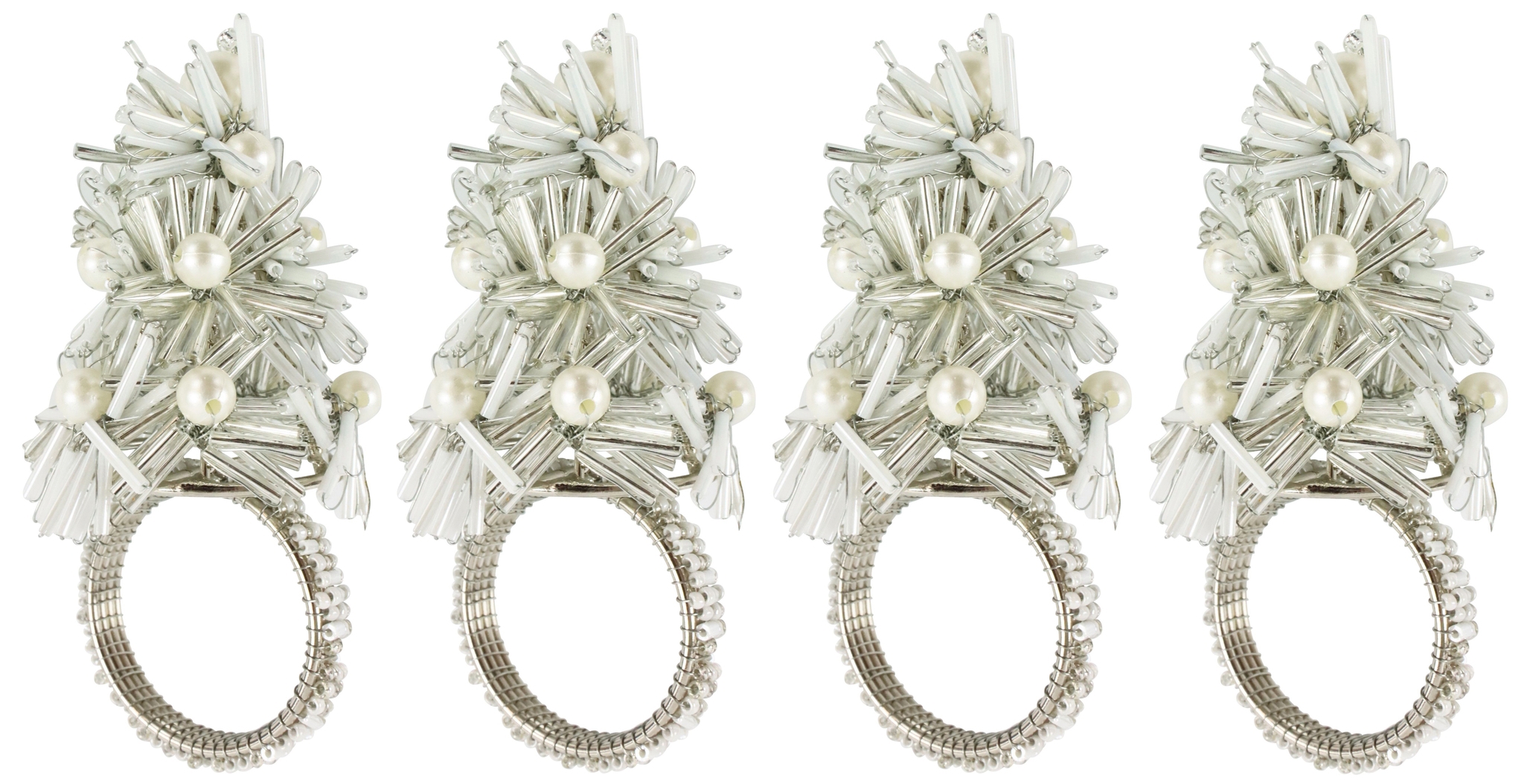 Cada servilletero de este set está fabricado en hierro resistente y mide aproximadamente 11 cm de alto, lo que le confiere una calidad duradera que sus clientes sabrán apreciar. El fino acabado blanco confiere a los servilleteros una estética sofisticada pero sencilla que se integra sin esfuerzo en cualquier mesa. El artístico diseño de árbol de Navidad de los servilleteros está adornado con delicadas perlas de imitación, que añaden un toque de brillo y glamour a la mesa decorada festivamente.