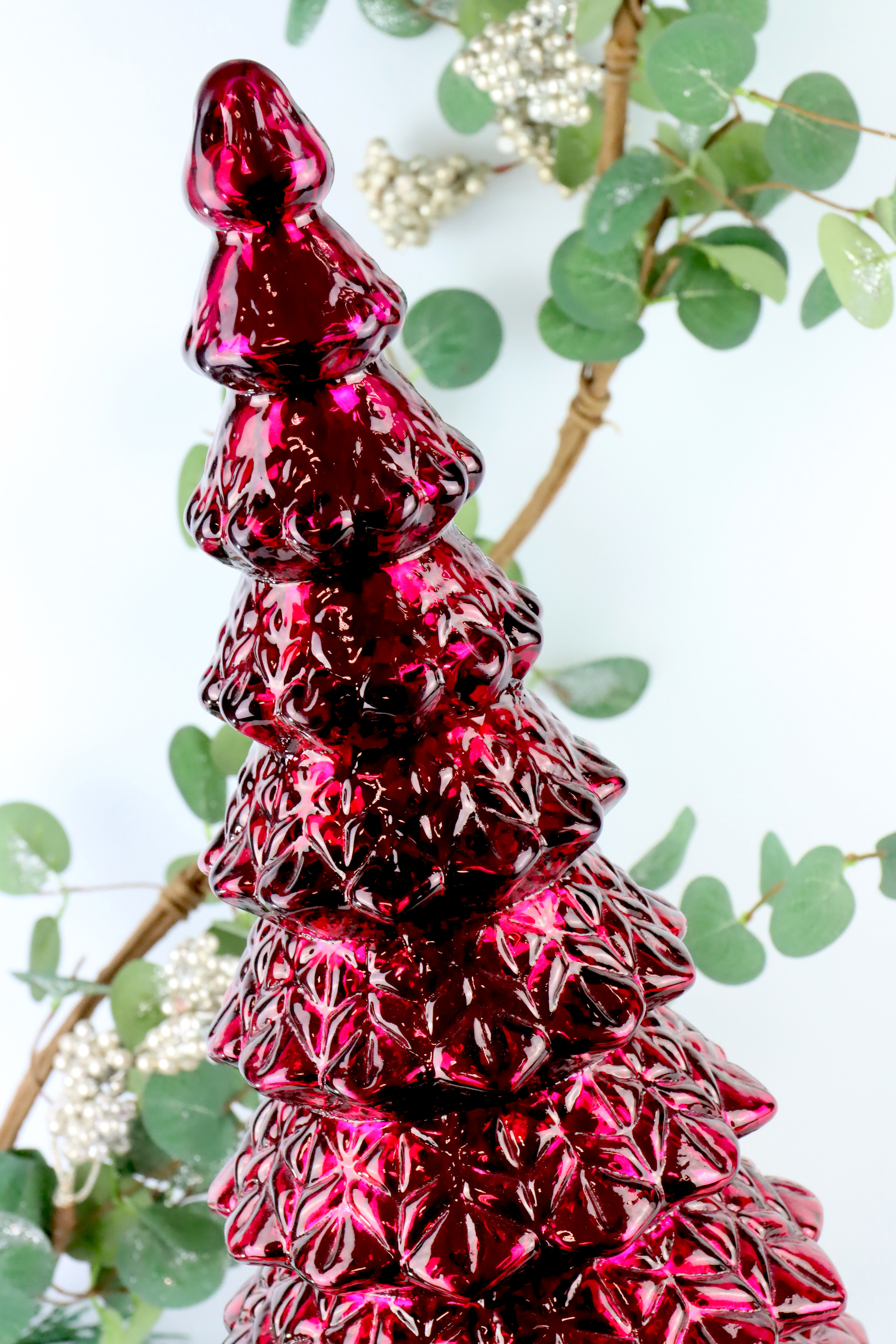Artículo nº 8342 - El árbol de cristal "Carnaval": un exquisito toque navideño para su hogar y su negocio de estilo de vida. Cree un auténtico ambiente navideño para sus clientes y acentúe una atmósfera acogedora con este árbol de cristal finamente elaborado en rojo resplandeciente.