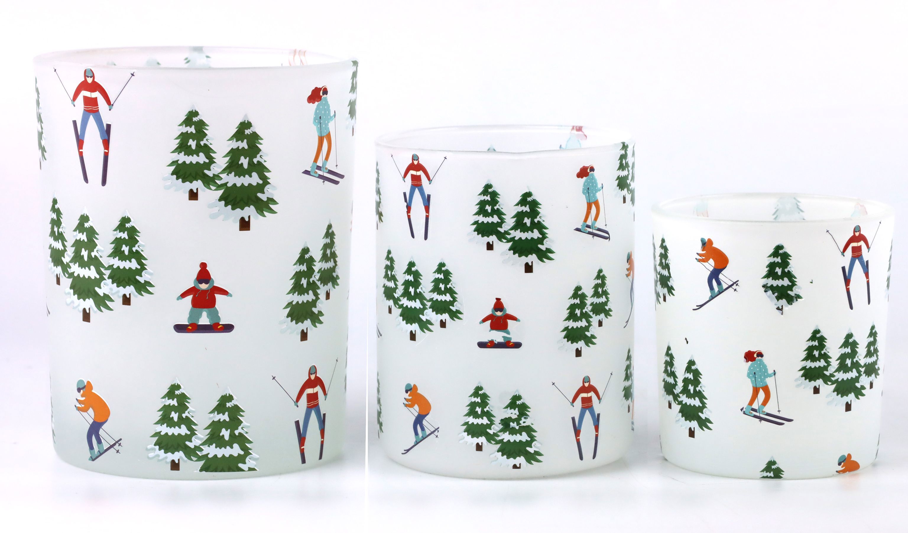 Experimente el país de las maravillas invernal en su hogar con nuestras exquisitas linternas "Snowy Escapades". Este juego de 3 piezas combina una estética suntuosa con un diseño funcional y está especialmente diseñado para la venta al por menor fija en el sector del hogar y el estilo de vida. Cada farolillo está decorado con una intrincada escena de esquiadores y ofrece un ambiente cálido perfecto para la temporada de otoño e invierno.