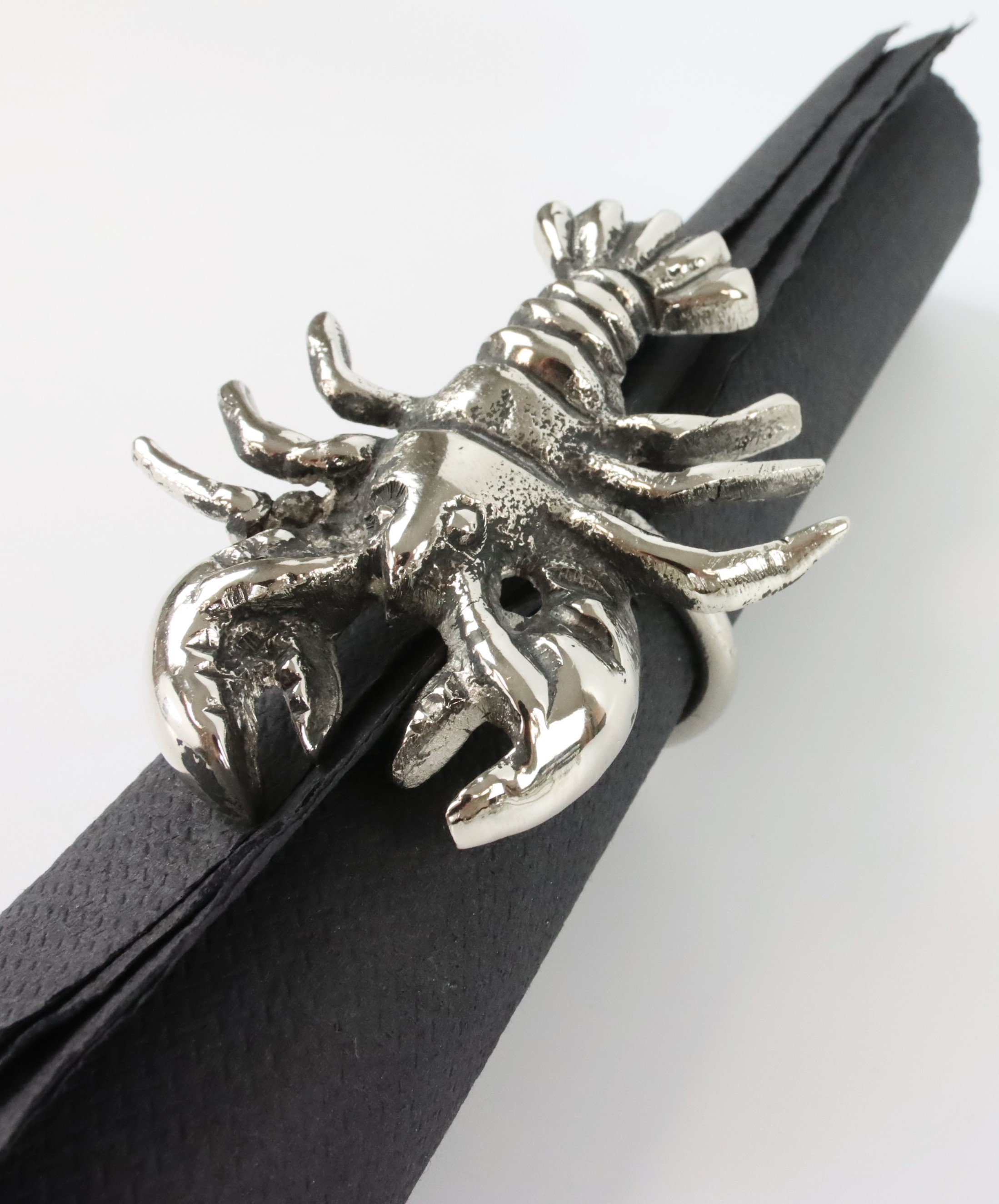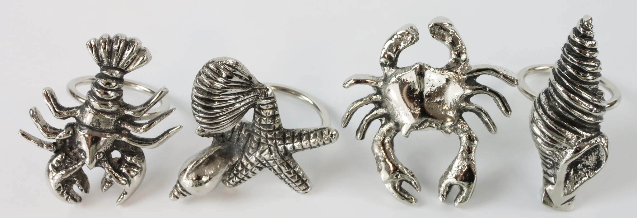 - Set de quatre ronds de serviette avec des animaux marins dans une élégante finition argentée