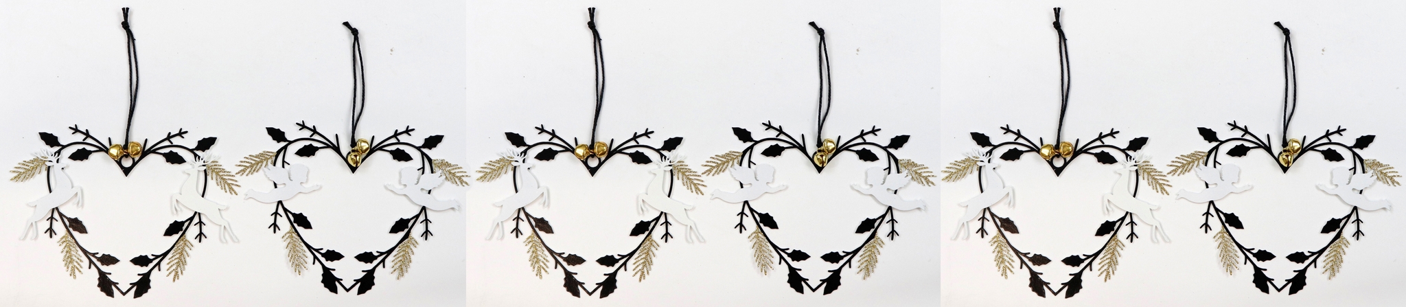 Ce set de qualité supérieure se compose de six cœurs détaillés, chacun étant fabriqué en métal résistant. Avec une taille attrayante d'environ 17,5 cm par pendentif, ils attirent l'attention et sont parfaits pour embellir les sapins de Noël, les vitrines et les surfaces de vente. Leur couleur neutre permet de les intégrer harmonieusement dans différents concepts décoratifs, que ce soit dans un style classique ou moderne.