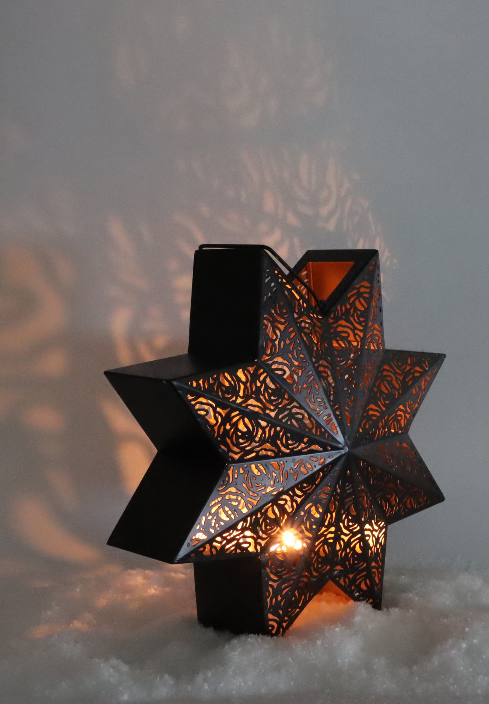 La lanterne étoilée "Étoile" a été fabriquée en fer avec le plus grand soin et l'amour du détail et se distingue par son design minimaliste et moderne. La couleur noire profonde de la lanterne crée une ambiance noble et élégante et permet à la lanterne d'attirer tous les regards. Avec une taille d'environ 37 cm, elle met habilement l'accent sans pour autant être envahissante.