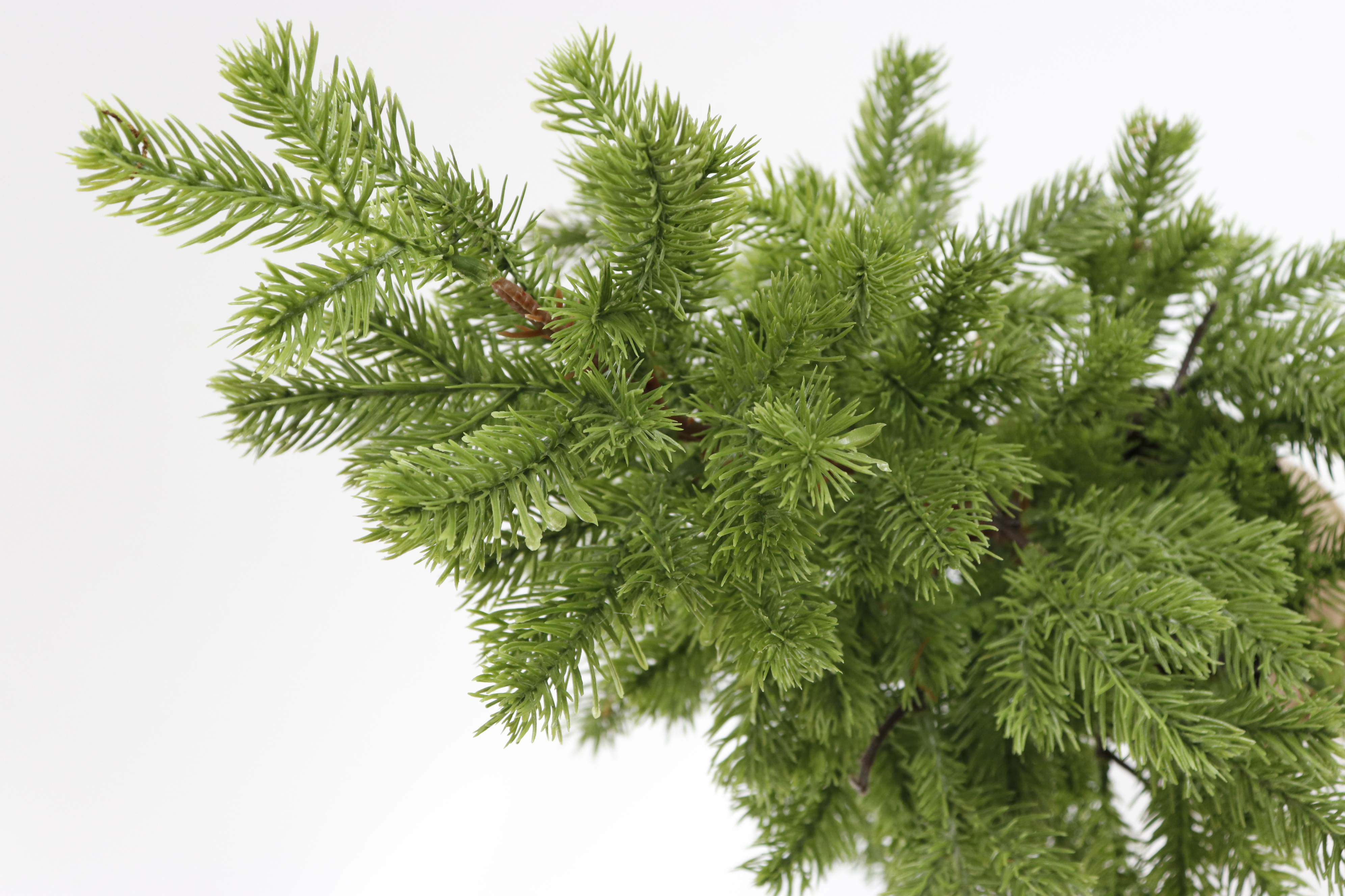 Notre sapin en pot est un produit phare pour chaque saison d'automne et d'hiver. Conçue pour ajouter une touche de préciosité à votre décoration spéciale de fin d'année, cette pièce d'environ 55 cm offre une présence considérable sans trop se mettre en avant. Elle est abondamment remplie de branches de sapin denses, fabriquées en PE-Polyfoam, un matériau durable et facile à nettoyer.