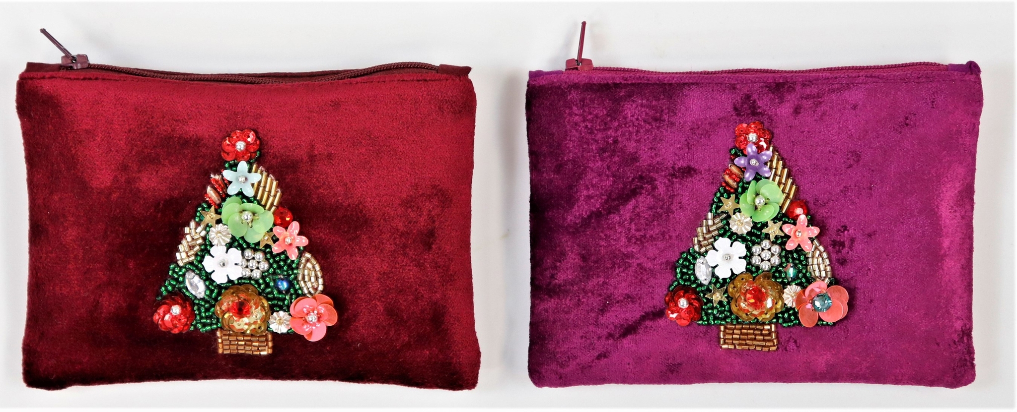 Mots clés : Noël, accessoires pour la maison, décoration, sac en velours, Christmas Tree, arbre de Noël, emballage cadeau, velours, coton, perles, rouge, rose, style d'intérieur festif.