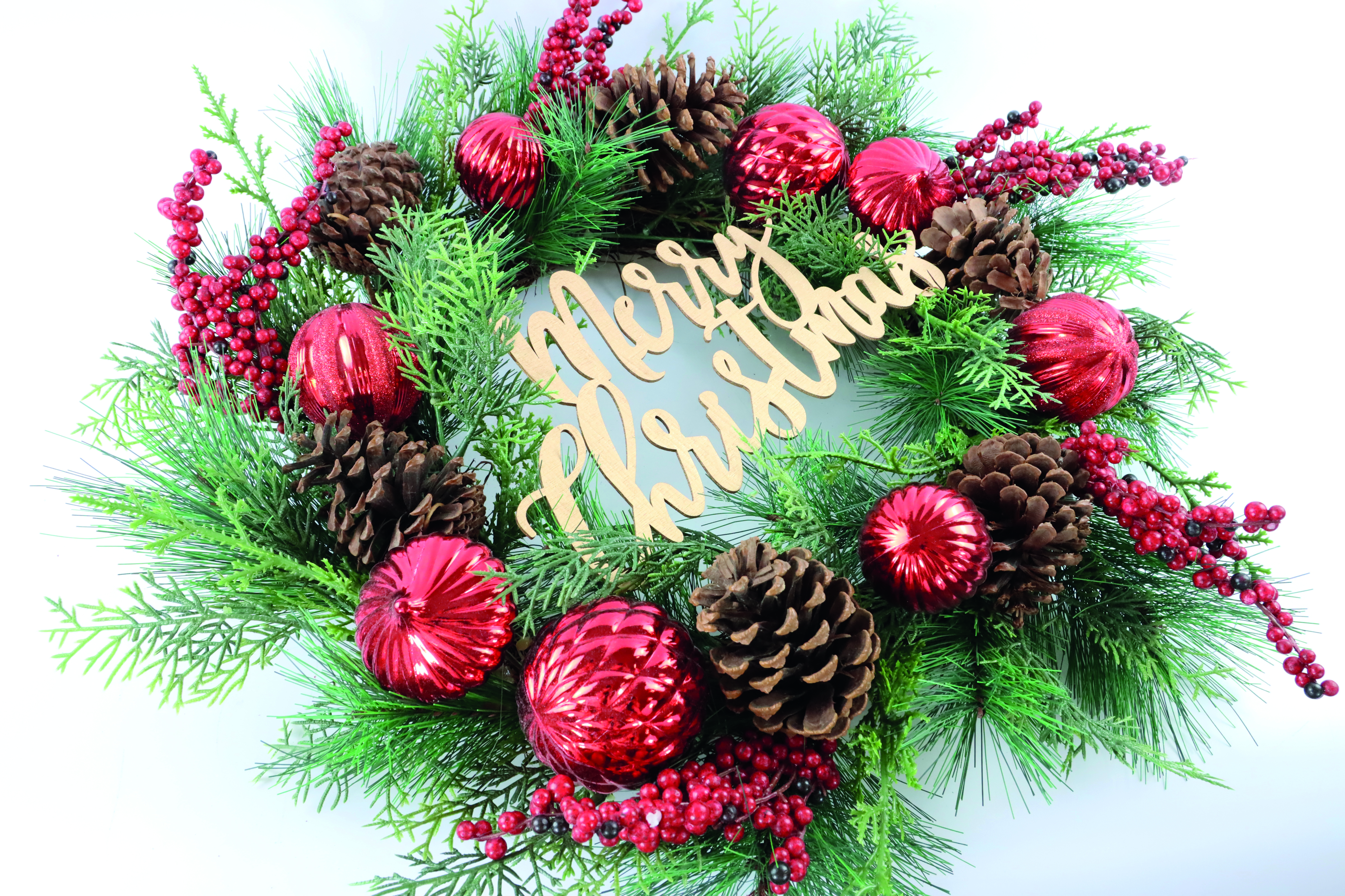 L'inscription "Merry Christmas", intégrée à la couronne et réalisée dans une écriture élégante, apporte un charme supplémentaire et donne à chaque client un sentiment d'accueil chaleureux lorsqu'il entre dans votre magasin. Les couleurs vives et le design attrayant font que cette couronne décorative attire tous les regards et deviendra à coup sûr le point fort de votre décoration de Noël.