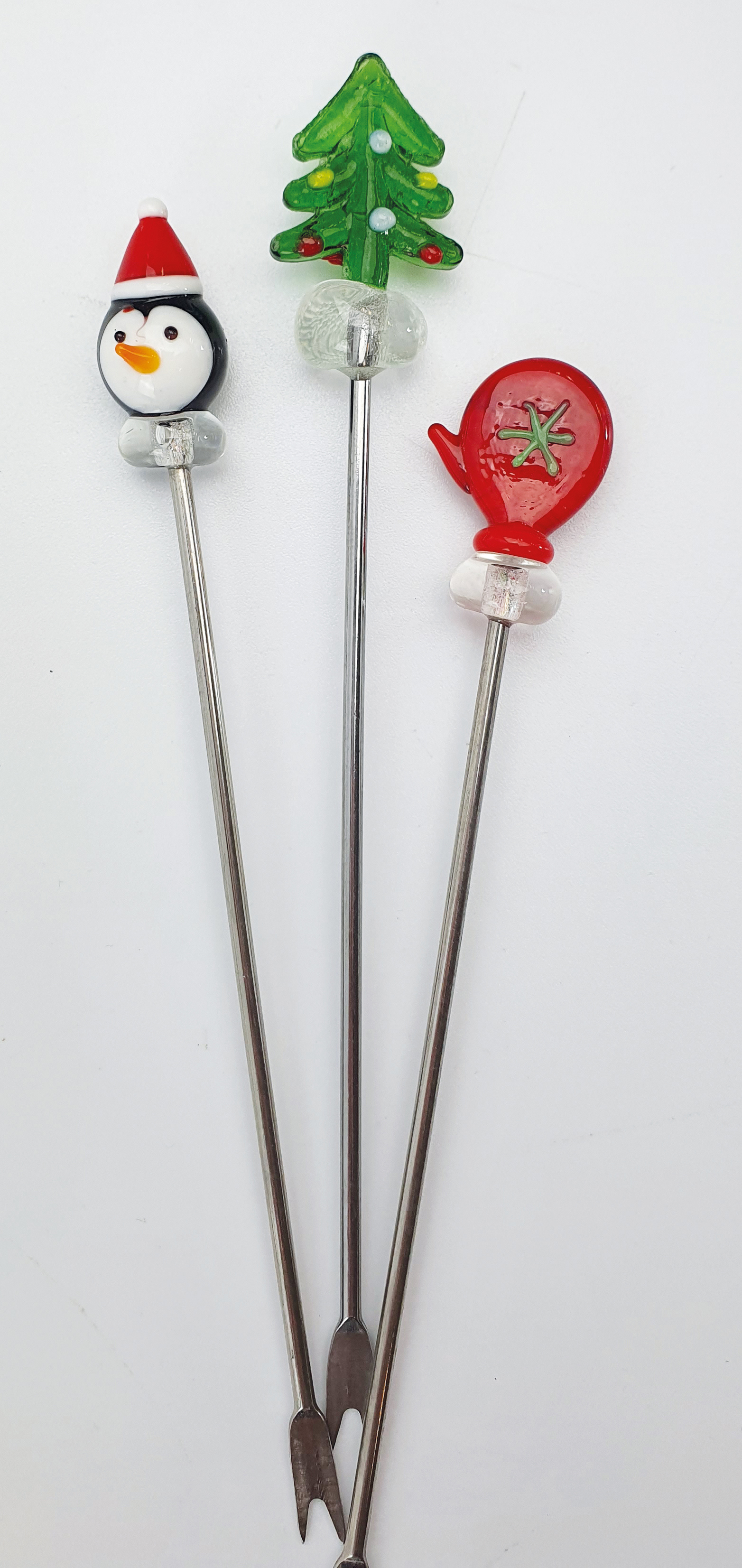 1. Ensemble de 4 piques de Noël, en fer et en verre, d'une taille d'environ 12,5 cm.