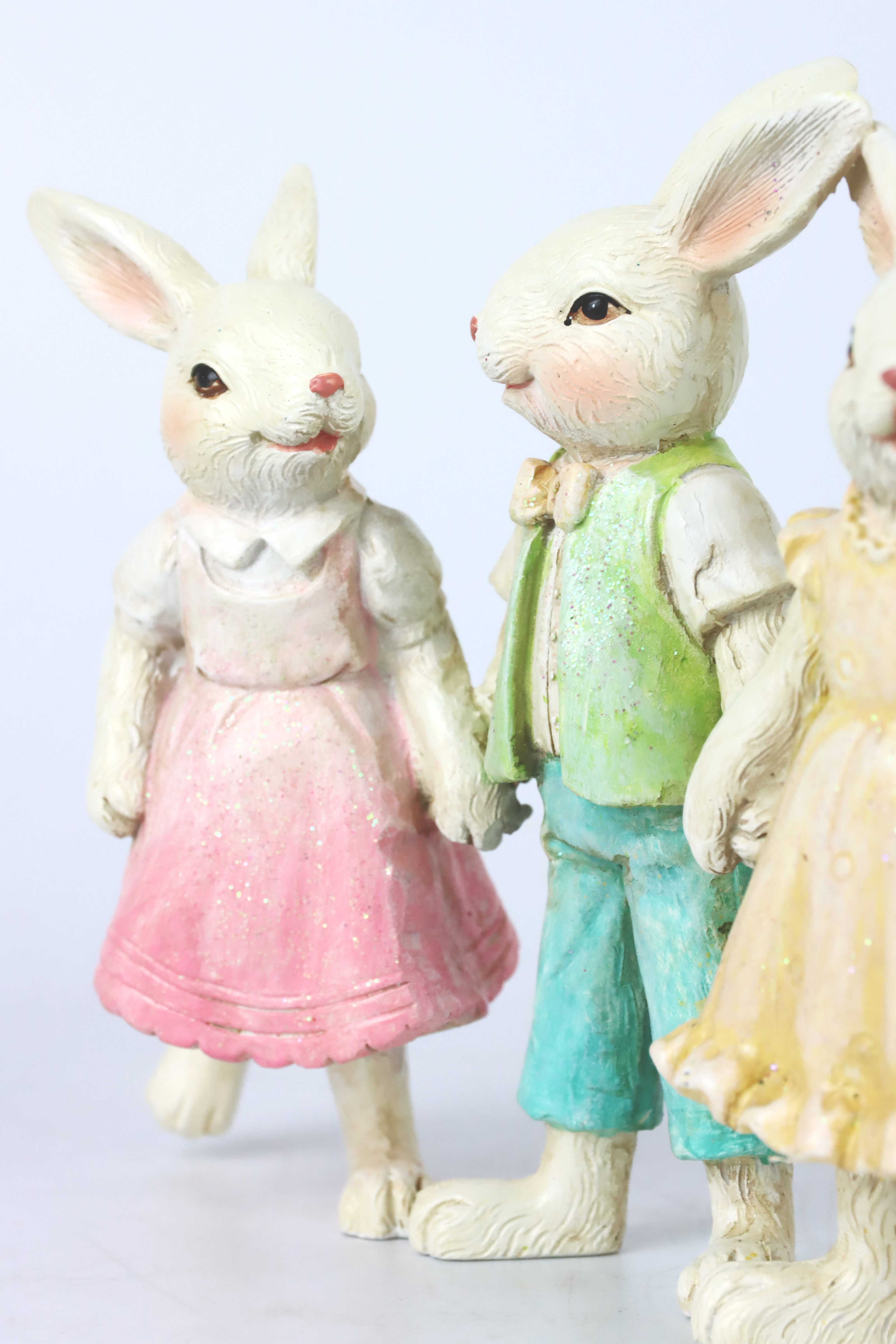 Découvrez la charmante "PARADE DE LAPINS 'PASTEL PARTY'", une exquise collection de lapins décoratifs spécialement conçue pour la saison printanière. Cette charmante collection de lapins se distingue par ses doux tons pastel et son travail manuel détaillé, qui confèrent à votre intérieur ou à votre magasin de détail une ambiance fraîche et accueillante.