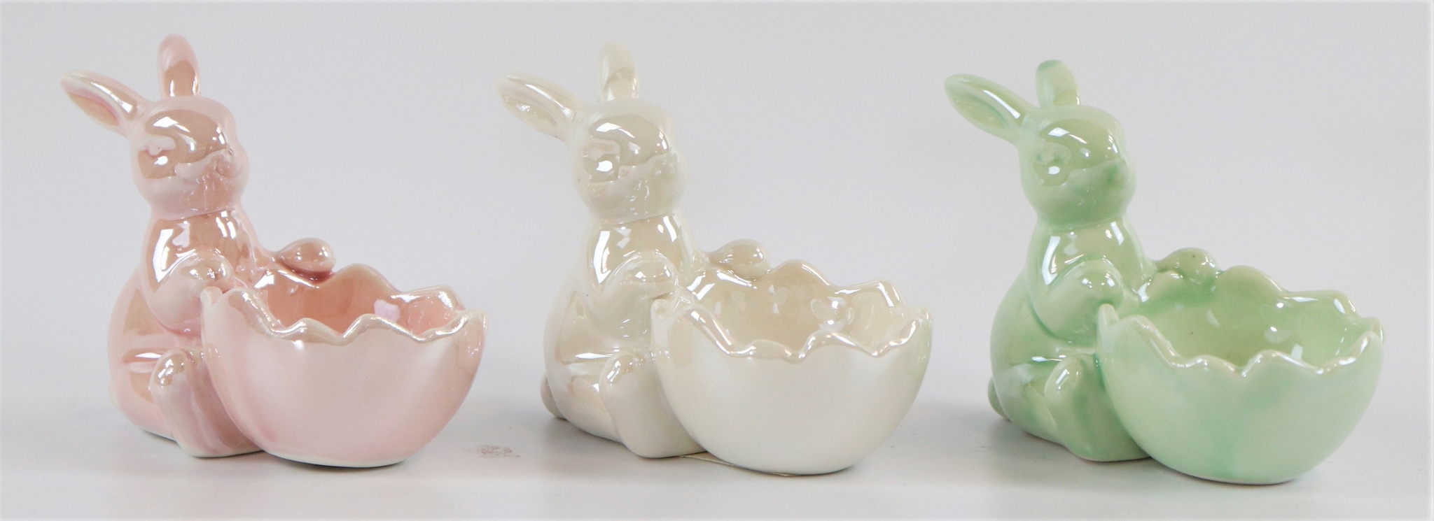 Donnez à votre petit déjeuner de Pâques ce petit quelque chose en plus avec notre charmant set de coquetiers "SHINE". Ce set de trois pièces en céramique de haute qualité n'est pas seulement un accessoire pratique pour la table dressée, mais aussi un élément de décoration élégant pour votre fête de Pâques. Chacun des coquetiers d'une hauteur d'environ 9,5 cm se distingue par un design unique qui impressionne particulièrement par les figures de lapin réalisées avec amour. La combinaison harmonieuse de la fonctionnalité et de l'esthétique fait du set de coquetiers "SHINE" le compagnon parfait pour le détaillant stylé dans le domaine de l'habitat et du style de vie.