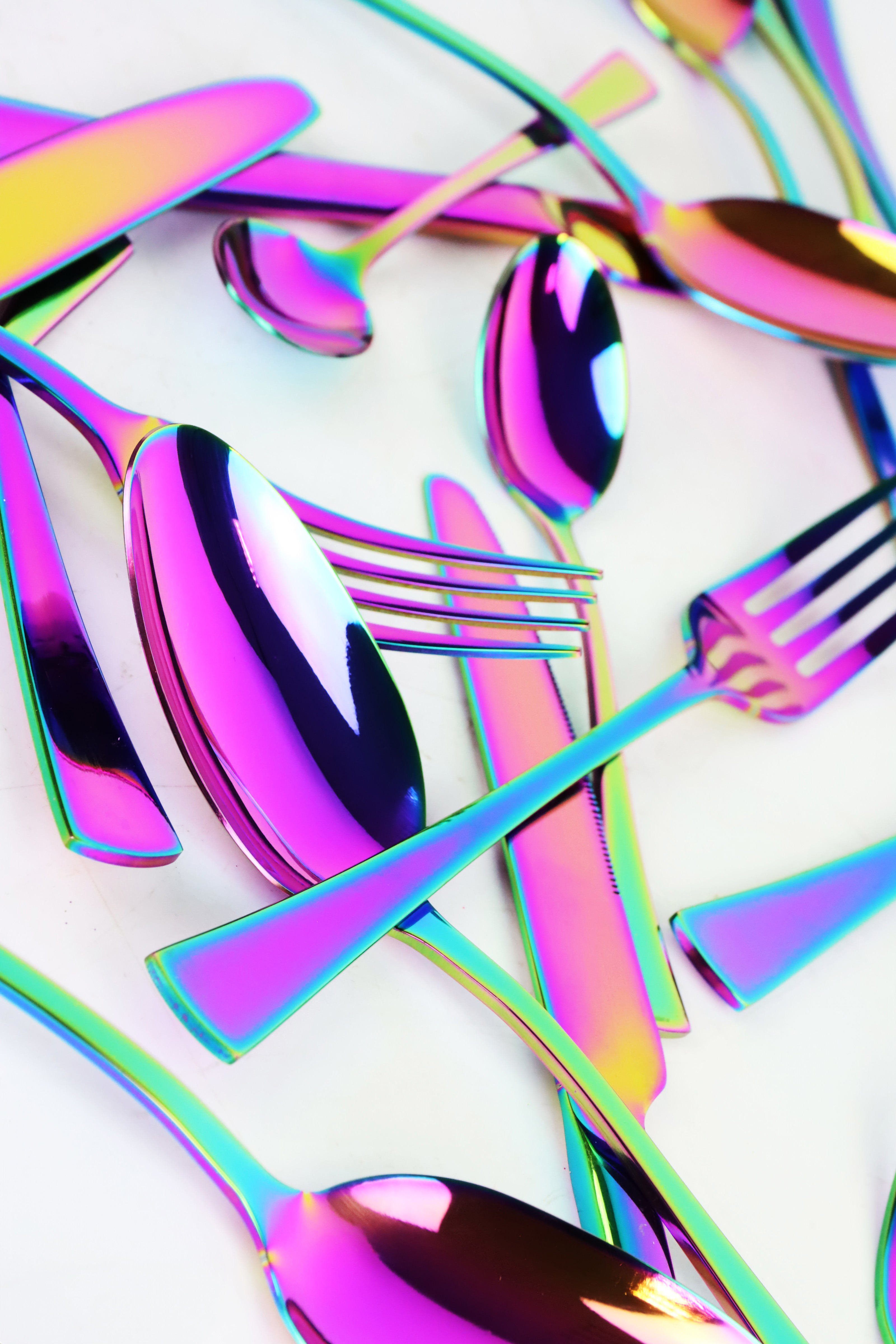 Questo set di posate unico trasforma ogni cena in una festa colorata ed è un must per chi cerca accessori da tavola originali e di alta qualità.