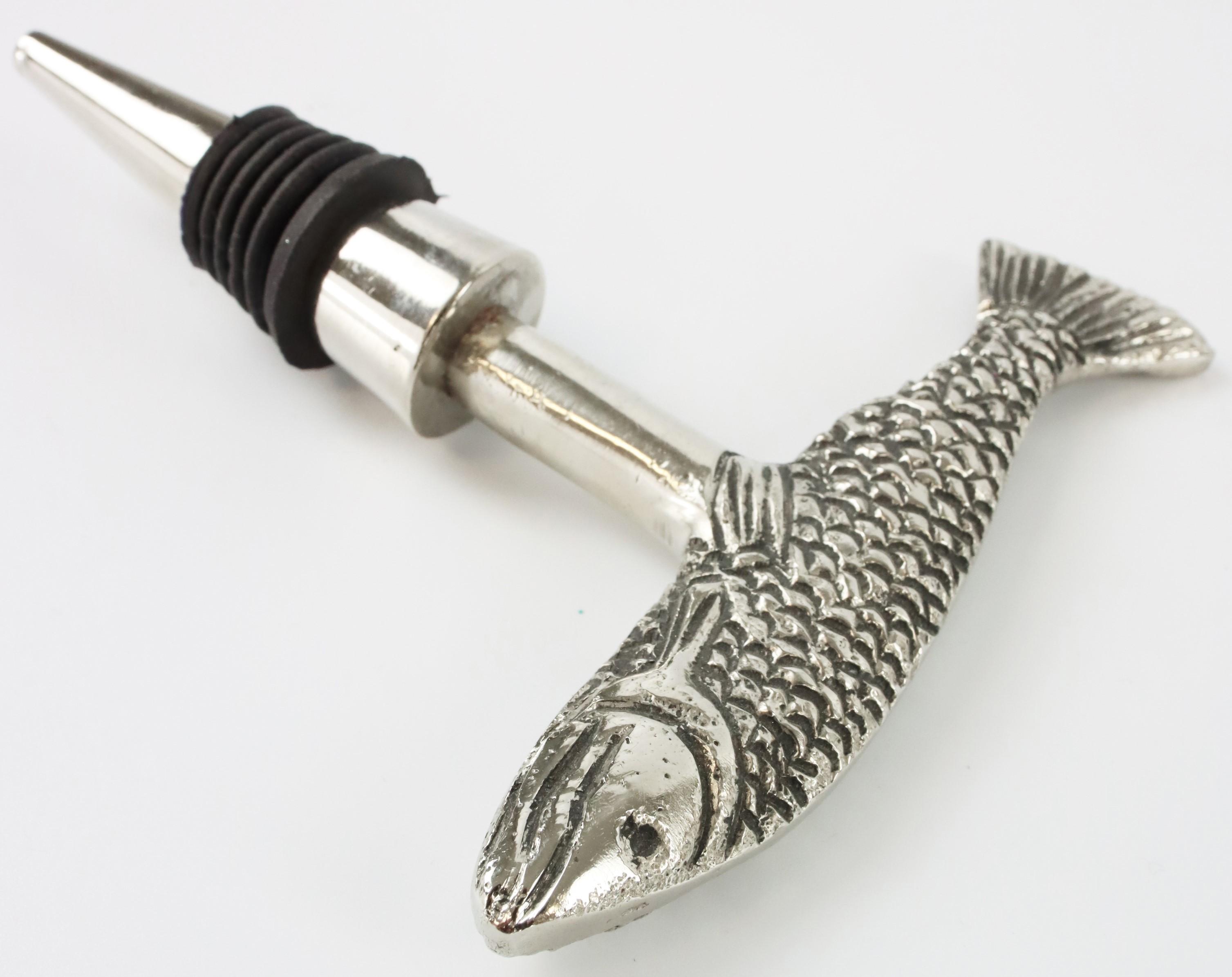 - **Design elegante**: Il pesce dettagliato in argento attira l'attenzione e aggiunge un tocco marittimo a qualsiasi bottiglia.